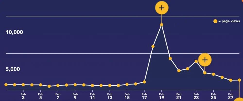 当时事新闻中出现不常见的单词时,通常会出现搜索量激增。