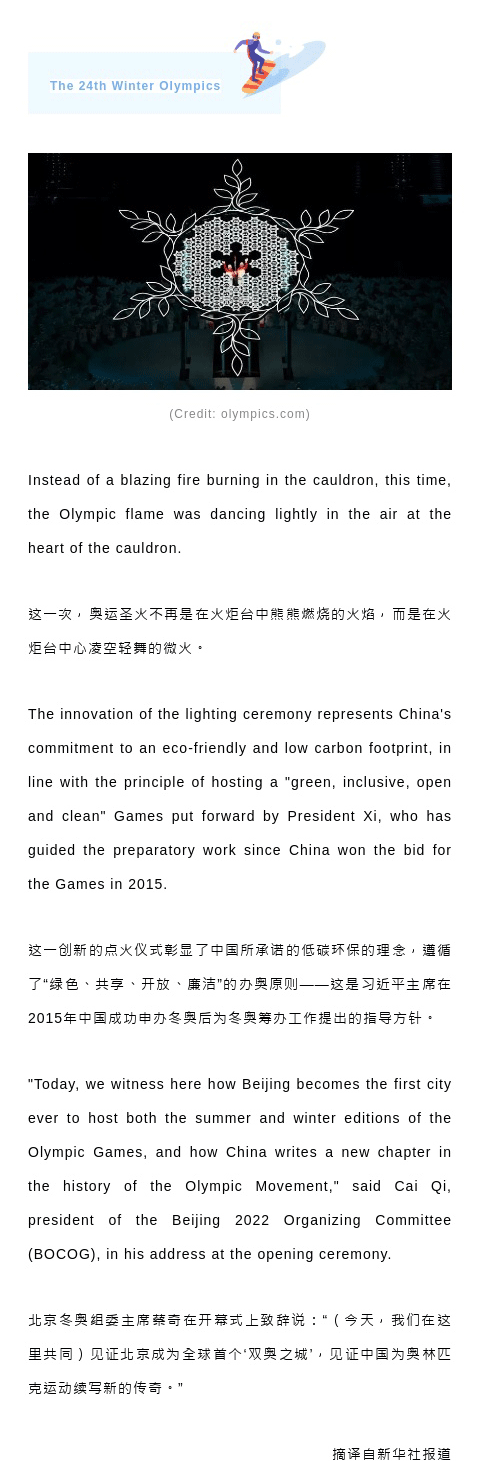 Distance | 北京冬奥点火仪式,用英文如何表达?