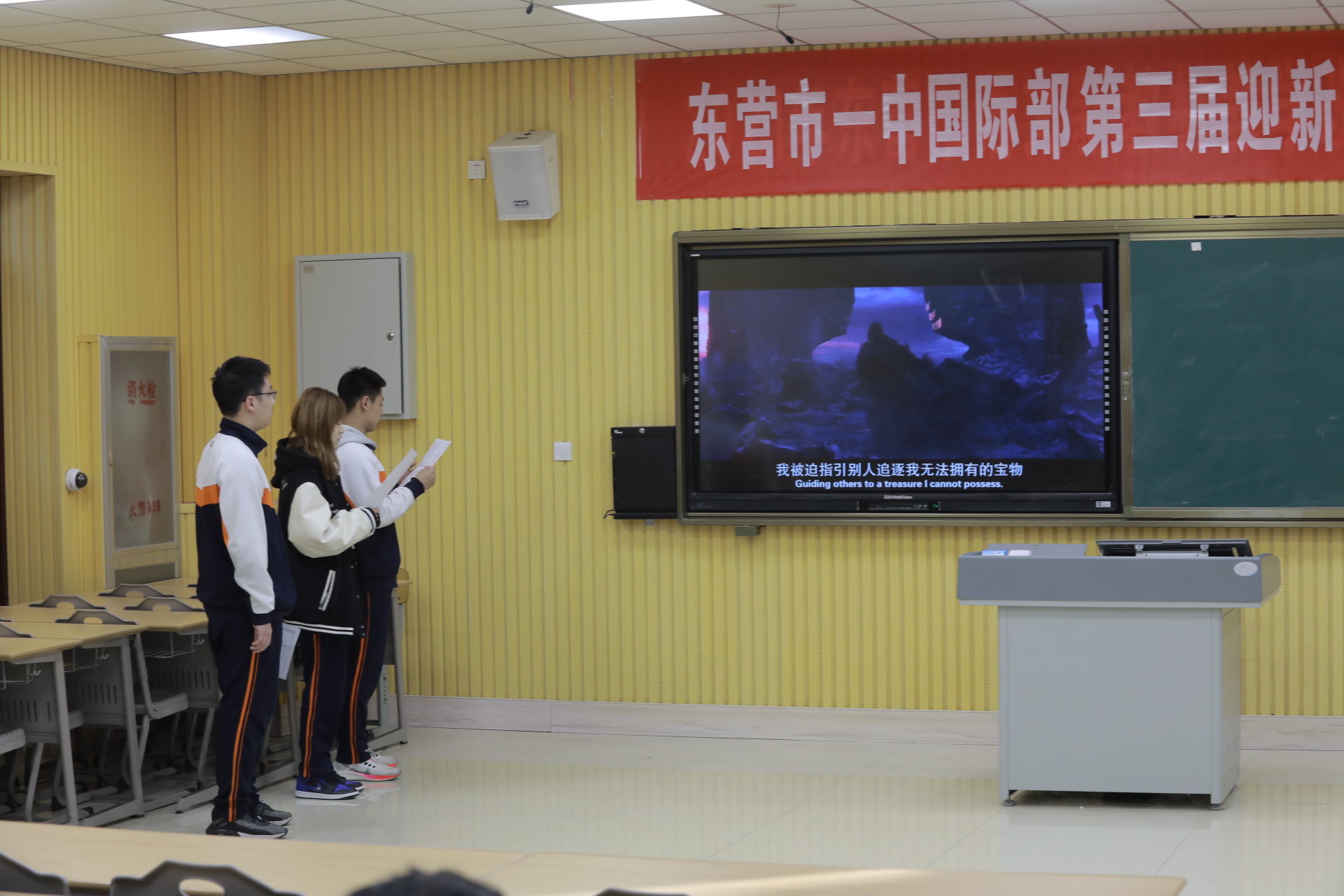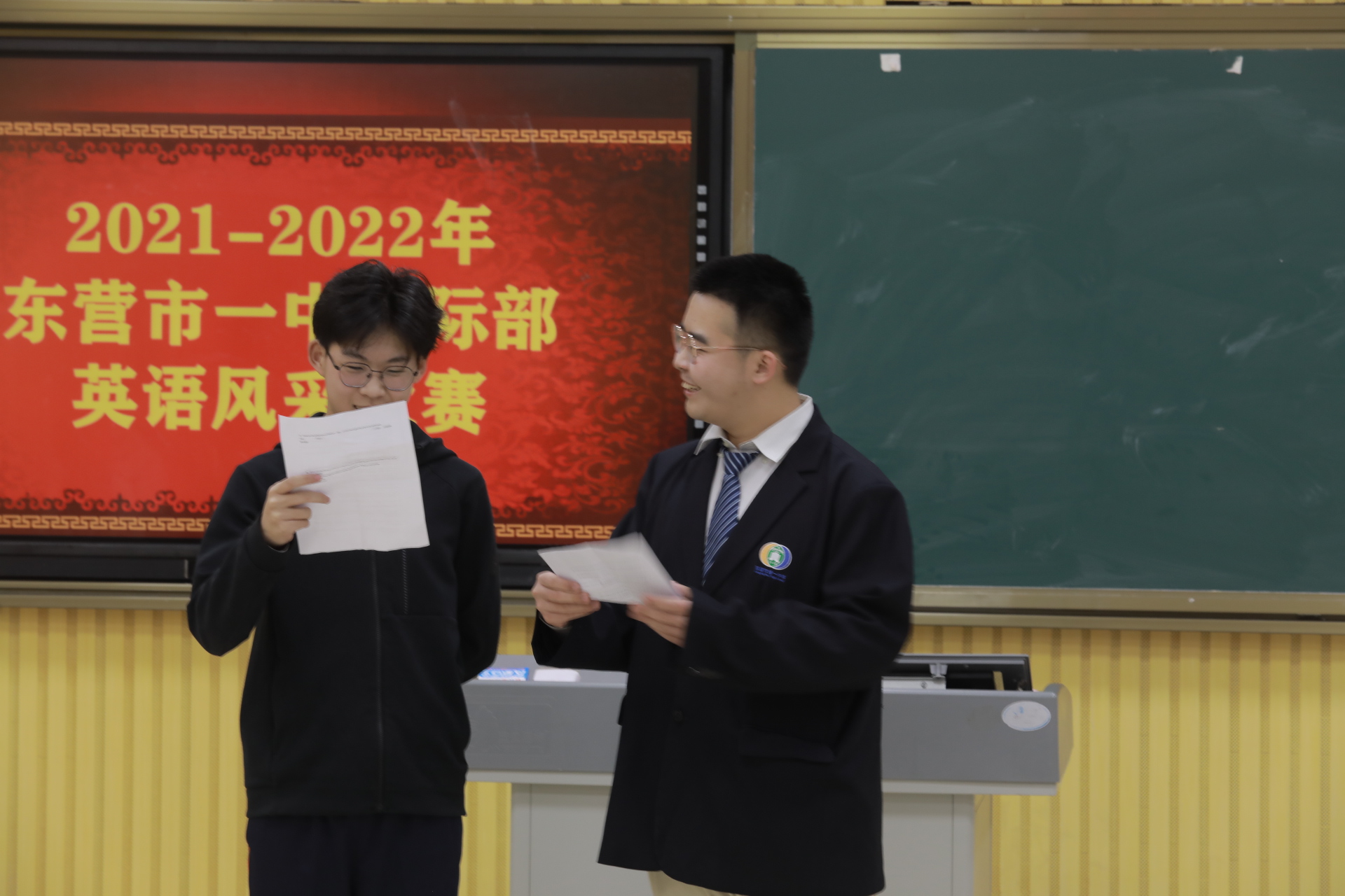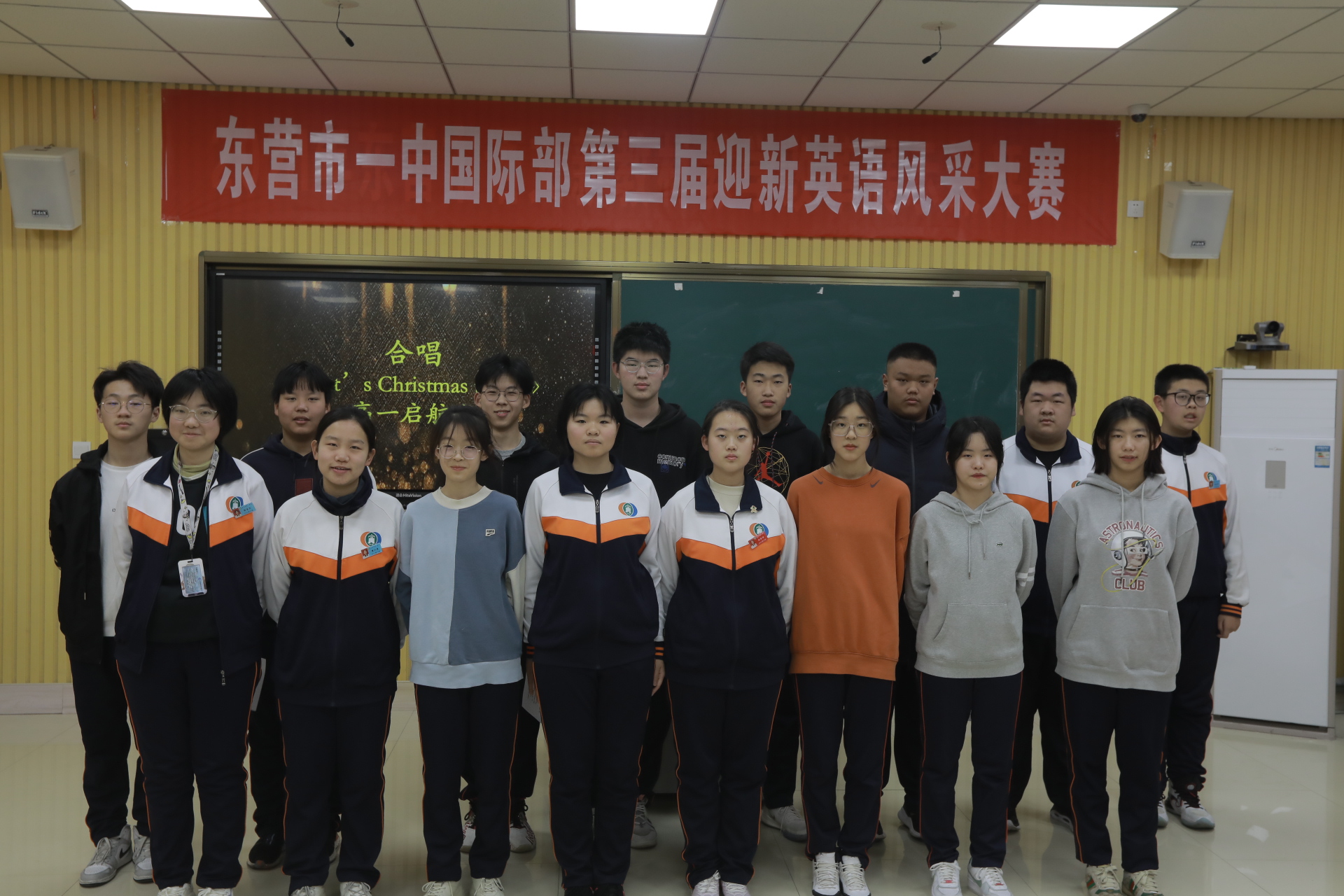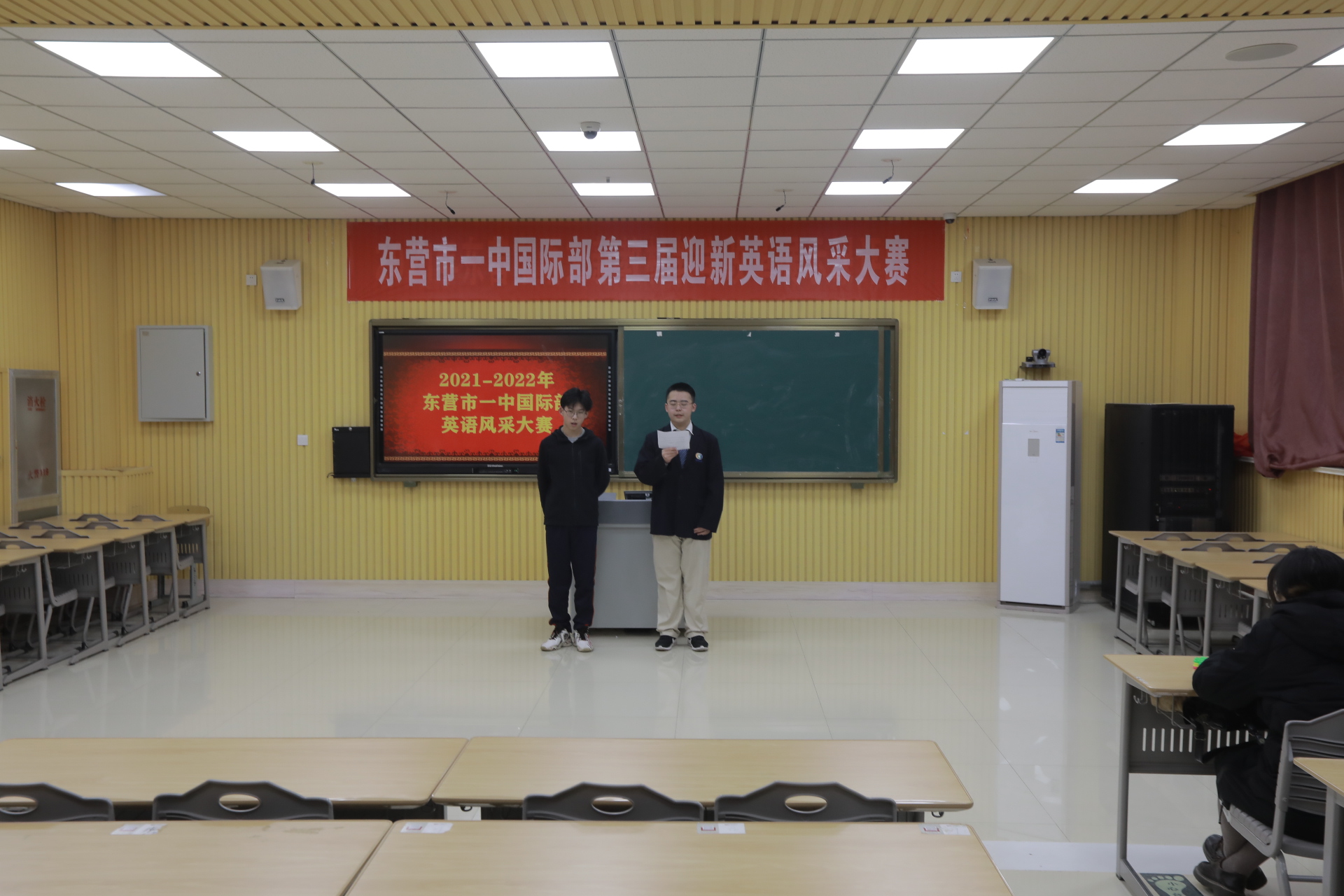 2021年12月30日,一年一度的迎新英语风采大赛——English Talent Contest如期举行,东营市一中国际部的师生们欢聚在这里,这里将成为欢乐的海洋。在这里,国际部的师生们十八般武艺齐上阵,为我们带来了英文歌曲合唱、原声电影配音、经典诗文朗诵、吉他弹唱等精彩参赛节目,向大家展示了市一中国际部学子们丰富的才艺和独特的风采。龙奔虎跃行千里,凤舞龙飞上九霄。在这万象更新的新年伊始,让我们伴随着国际部学子们精心准备的节目来迎接2022新年的钟声!
