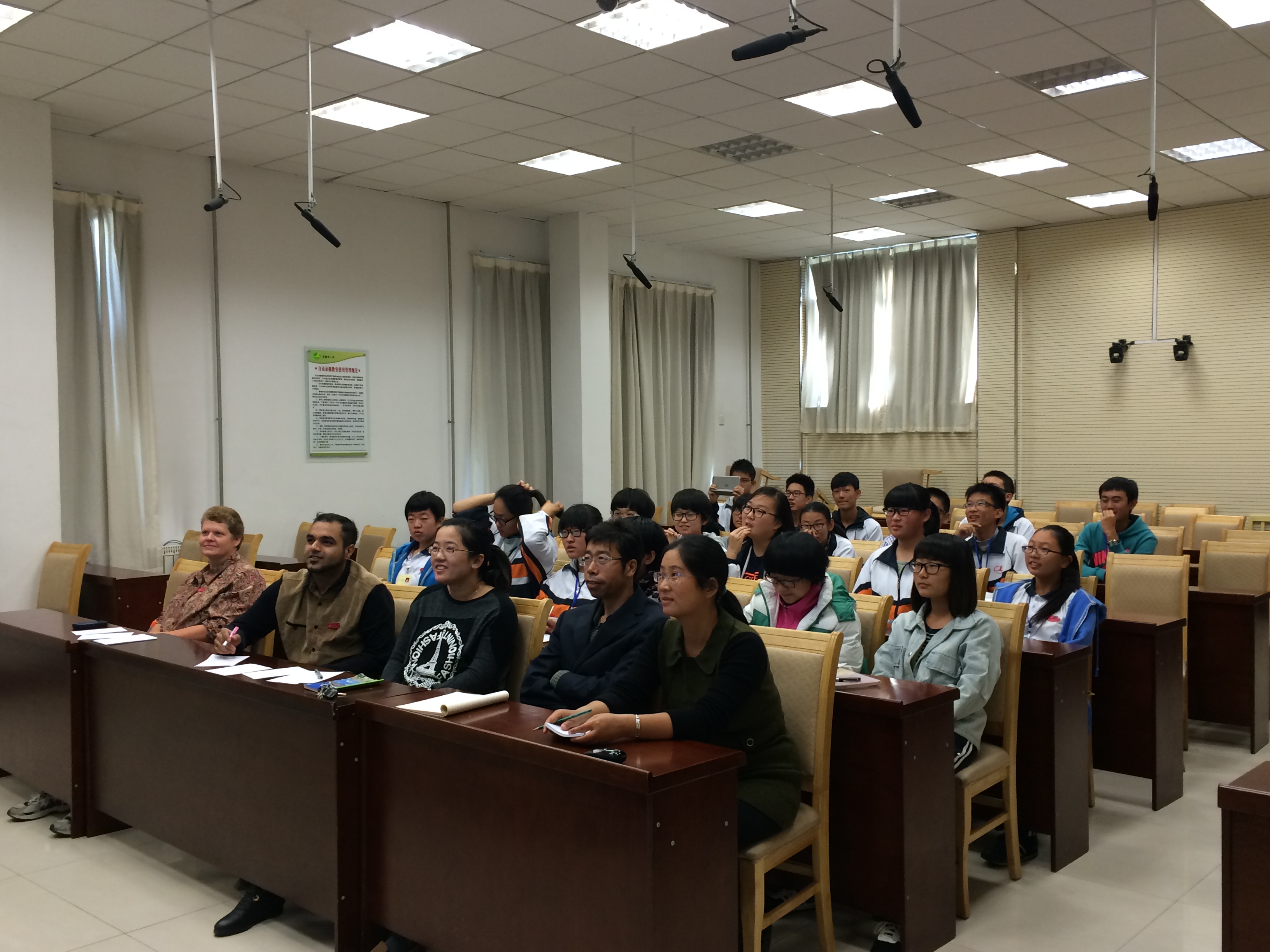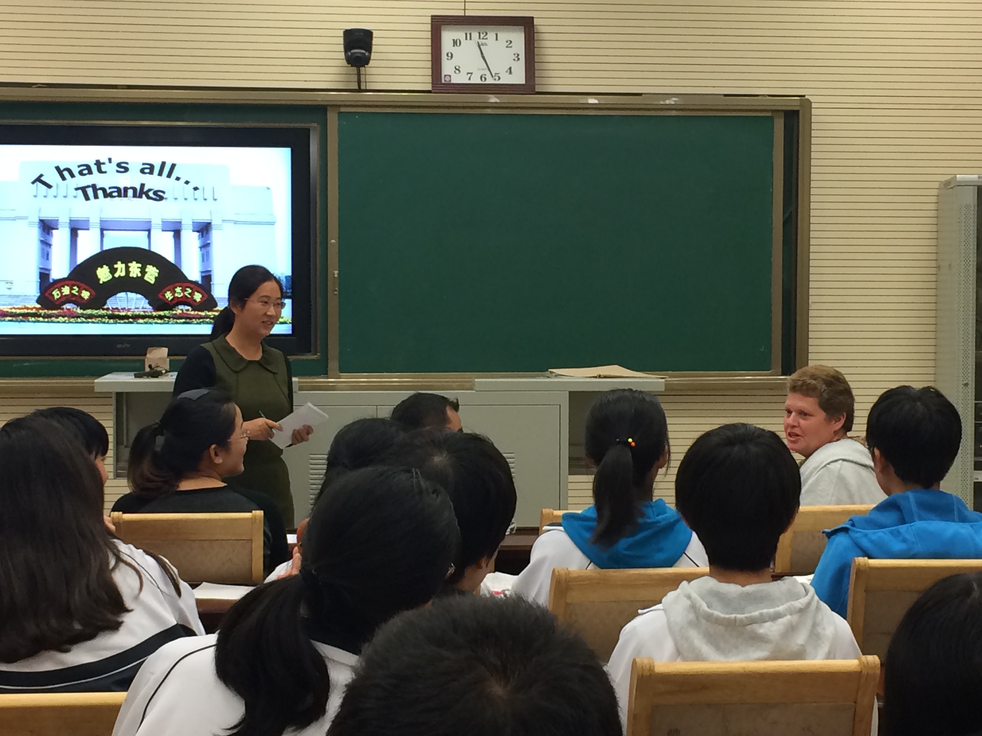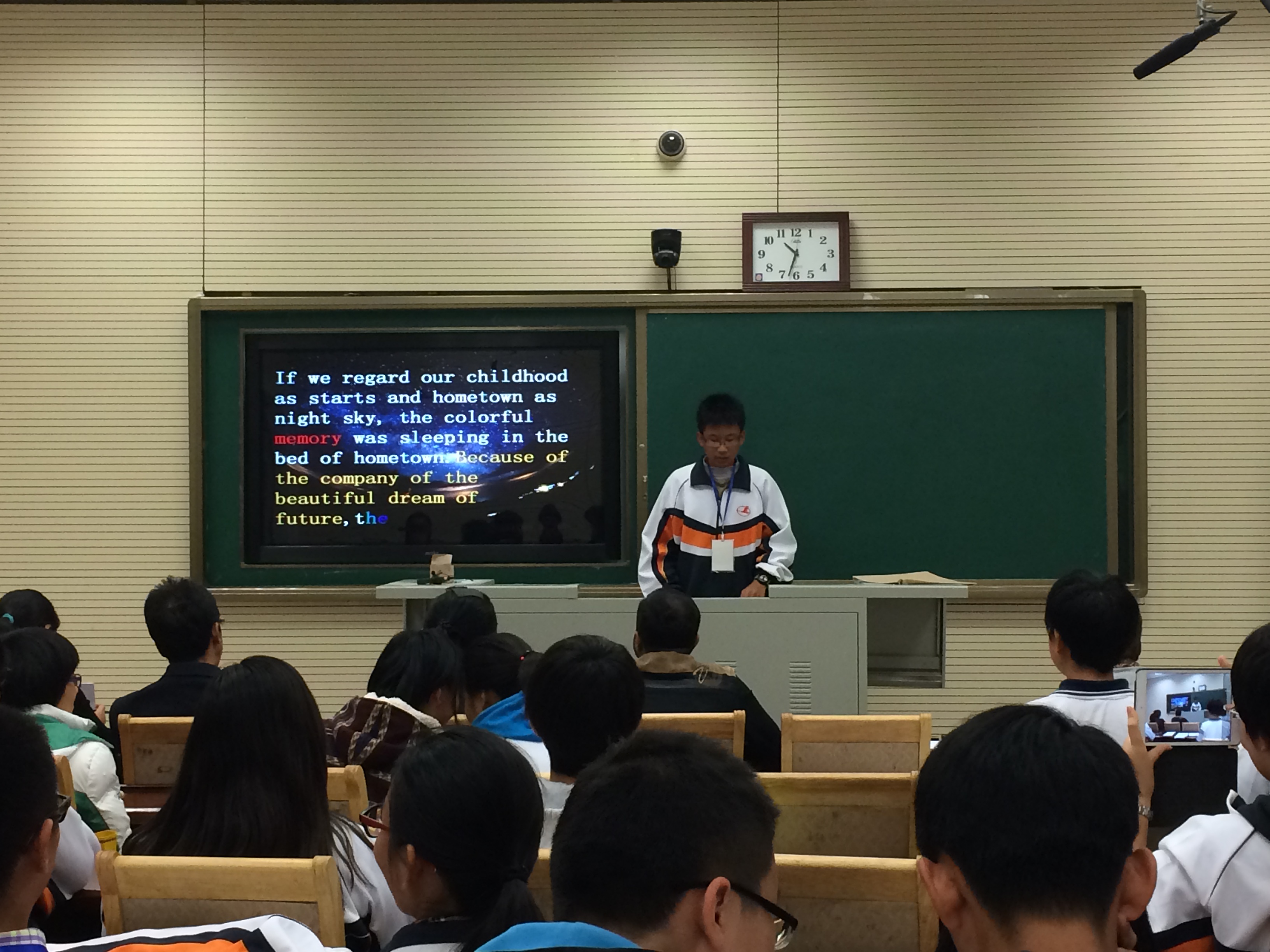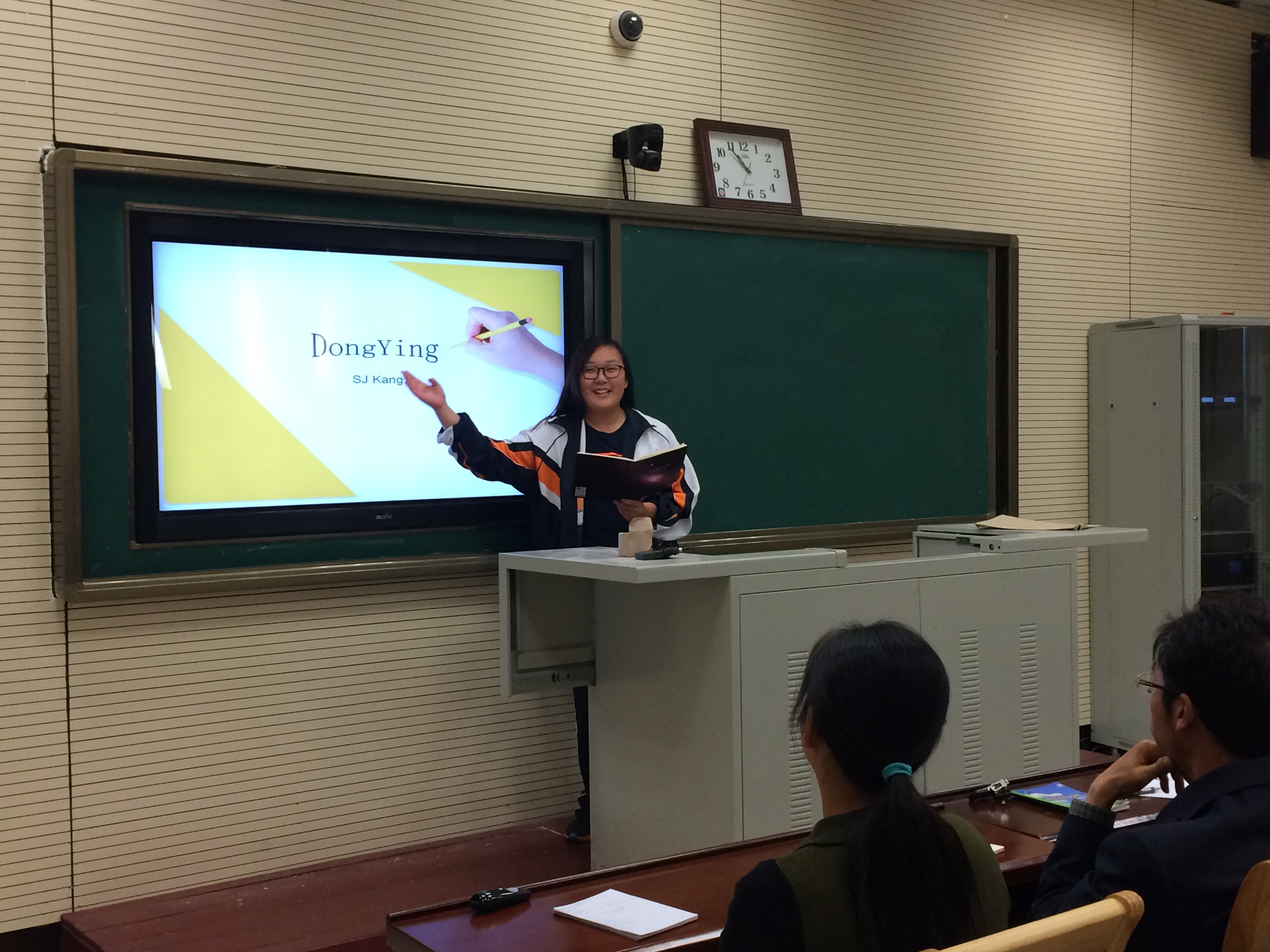 10月14日上午我校国际班学生三楼多媒体教室,举行了第三期英语角----我给外教当导游,国际班的同学利用英语给外教Mani 和 Leslie 介绍我们美丽的家乡东营。精美的幻灯片制作,缜密的逻辑思维,流利的口语讲解,倍受所有到场的老师赞赏。市一中国际部注重孩子们个性的发展和培养,采取西方高校盛行的“导师制”培养模式,定期开展丰富多彩的活动。学生入校一个月以来,学习的兴趣倍增。学生实现了从拘谨的听讲者到挥洒自如的授课者的转变。你可能会被里面精彩的教学所吸引。
