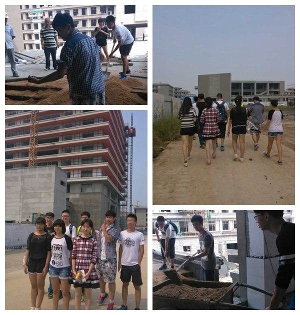 集体社会实践由辅导老师带队,赴我校新校工地参观和体验建筑工人们的生活。顶着酷暑,迎着燥热的风,学生们兴奋地走向新校工地。在工作人员的带领下,先参观了信息综合楼,站在最高点俯瞰新校全貌,孩子们不仅看到了漂亮的楼群、初具规模的运动场,还看到了让他们震惊的无数个特别的身影——烈日下黝黑而佝偻的背依旧专注地忙碌着自己的工作,指挥员也身体力行一刻不停地奔走在各个施工点。