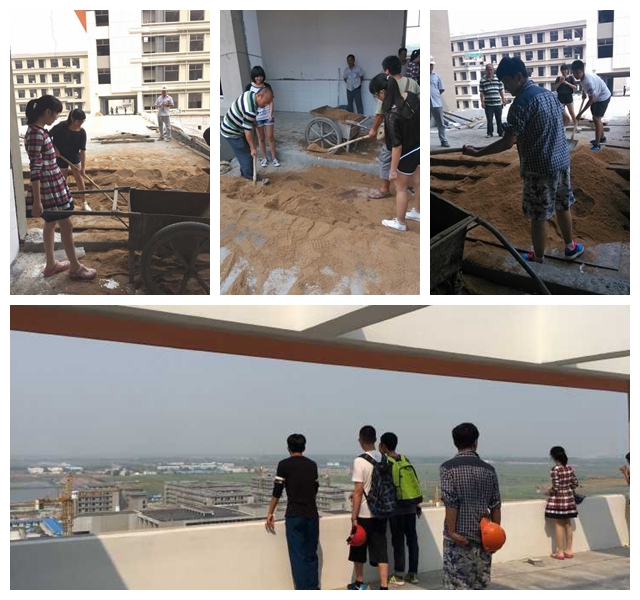 孩子们的心被工人师傅们投入而专注的工作精神点染,他们主动上前从工人师傅手中拿来铁锹,帮助他们运沙子、搬地板砖。虽然缺少技巧,但他们非常认真;虽然力气较小,但他们懂得合作;虽然他们寡言不语,但主动承担的精神已将感谢之意传达。