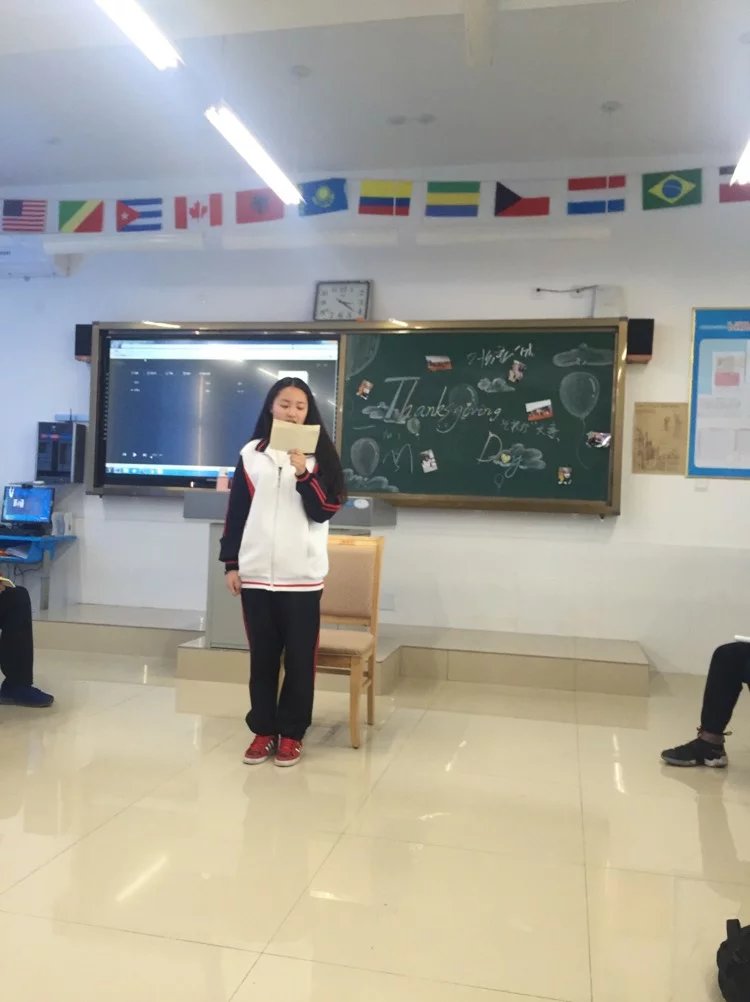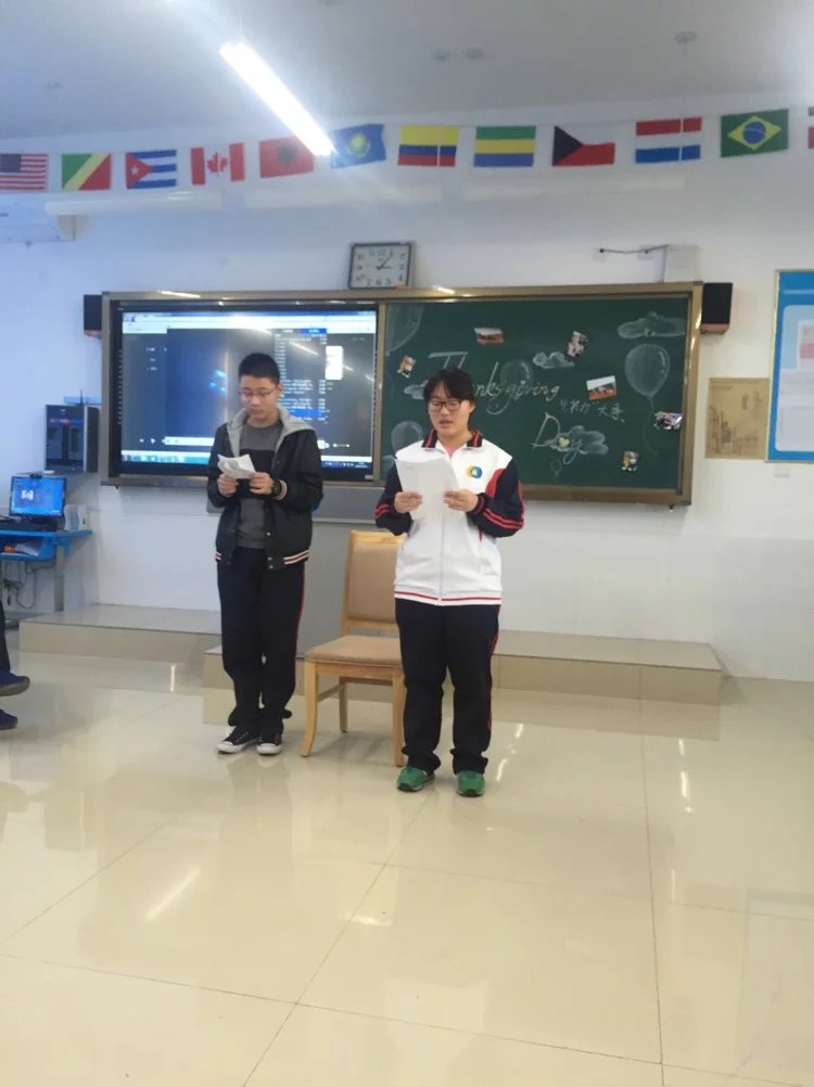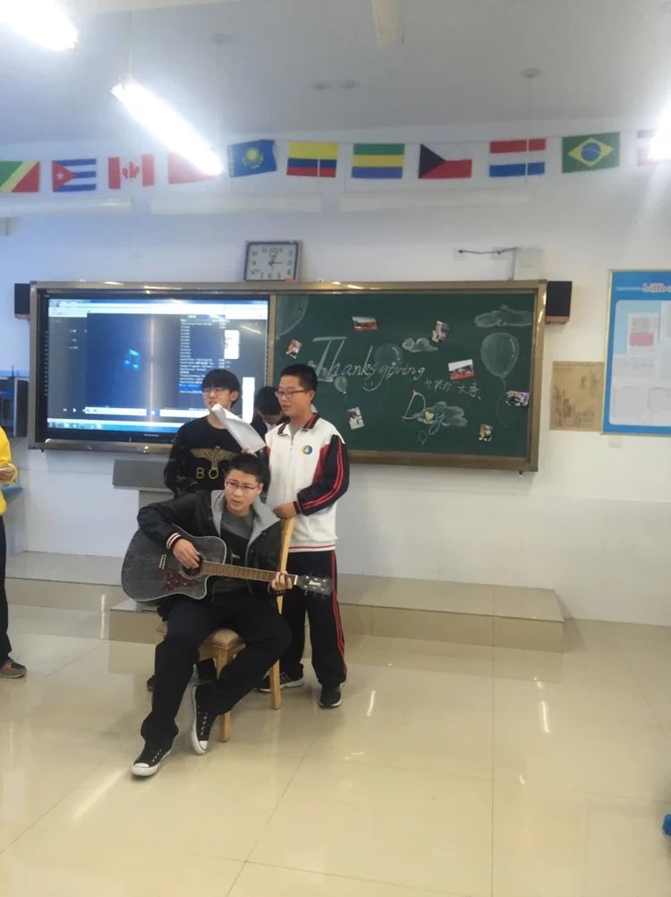 首先邀请了国际部外教Thomas给同学们讲了感恩节的来源以及我们在这个节日该做什么。时间很快就过去了,同学们展示了各自的才艺,有的唱歌,有的弹吉他,使现场的氛围瞬间活跃起来。