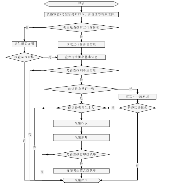 通过身份确认的考生需采集本人数字照片及指纹信息,具体操作按《山东省2019年普通高考报名现场确认信息采集工作流程及要求》(附件4)执行。
