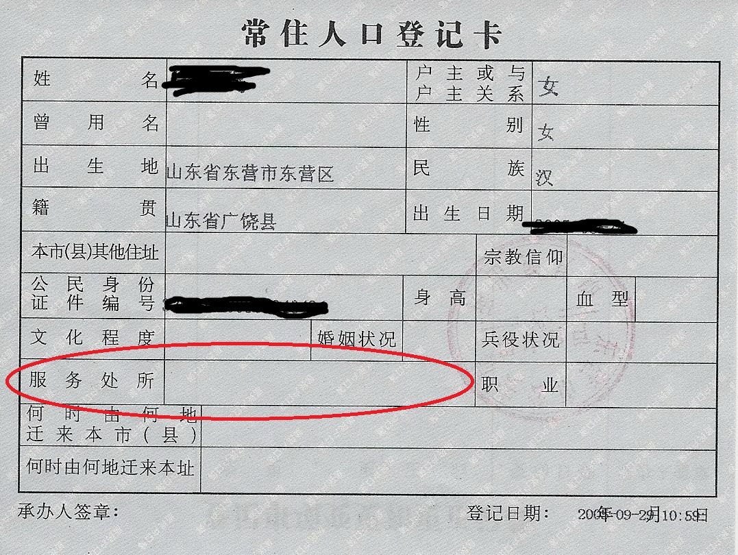 2.户籍:如果学生的学籍不在招生范围内的学校,户籍在东营区也可以报考,但是学生的监护人不能有任何一方是油田职工(根据监护人户口本的“服务场所”栏认定)。