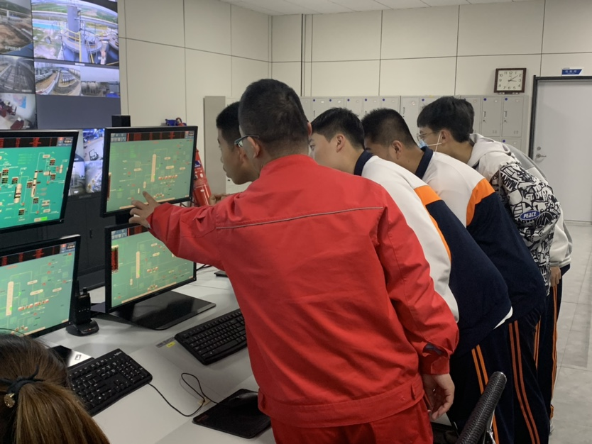 同学们还走进化工厂的控制室,控制室刘主任讲解了化工厂的全自动平安工作程序及工厂各设备的用途。学生们进一步明确了所学知识是如何转化为生产力的,激发了大家的学习兴趣,并由此触发了与技术人员的深入交流。实用科技的亲身体验,大量深入浅出的讲解指导,让很多同学对化工职业产生浓厚的兴趣,对未来的职业规划有了一些理性明晰的想法和全新的期待。
