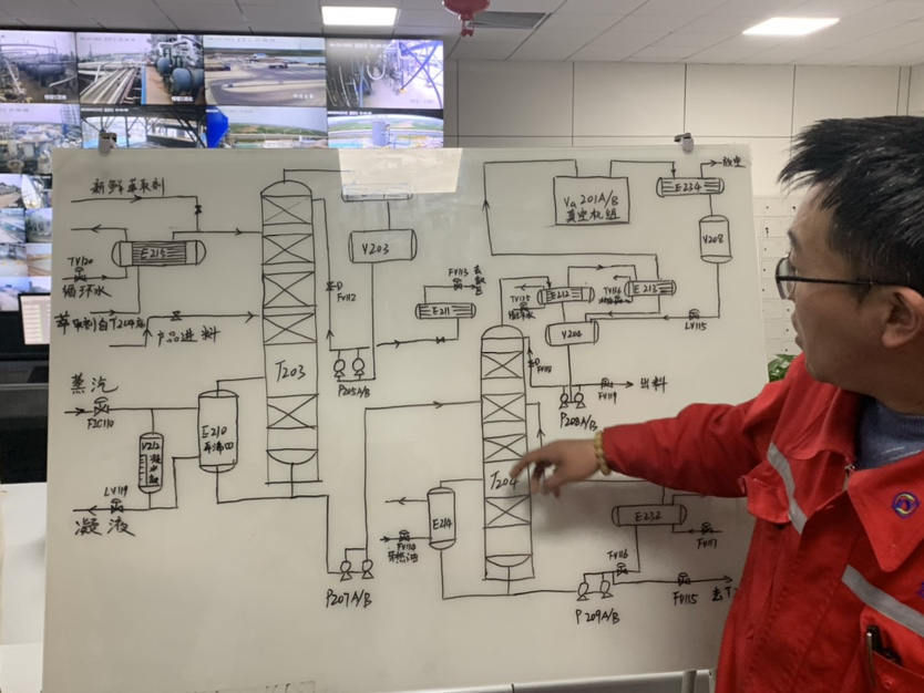 同学们最后走进化工厂的厂区安全观测点,郭学诗老师结合学生的已有知识展开讲解,从高压反应釜到常年不熄的火炬,从液体表面张力测试到原油精炼的工艺流程,从精馏塔的串并联到球形储罐与圆柱形储罐的区别,从产品的种类产量到产品的价值用途,使课堂知识得以纵向发展与横向延伸,进一步培养了学生探索学习,不断创新的能力。