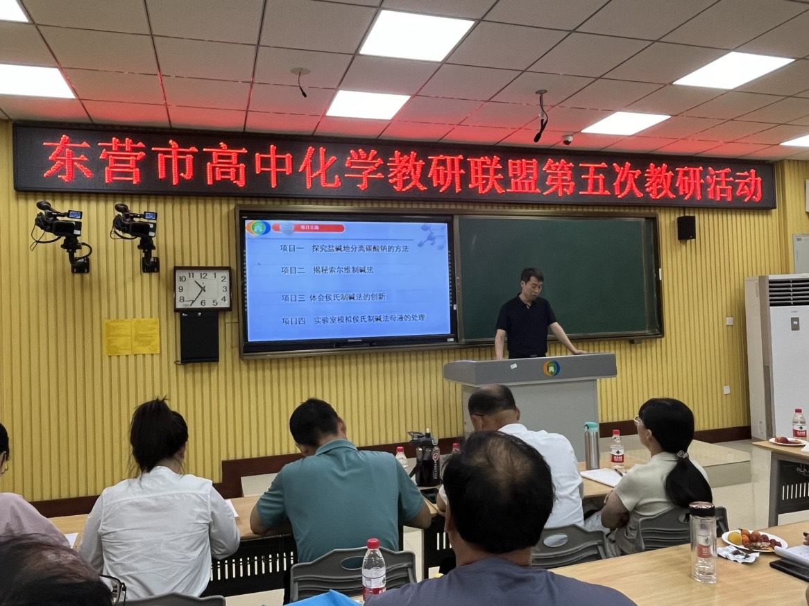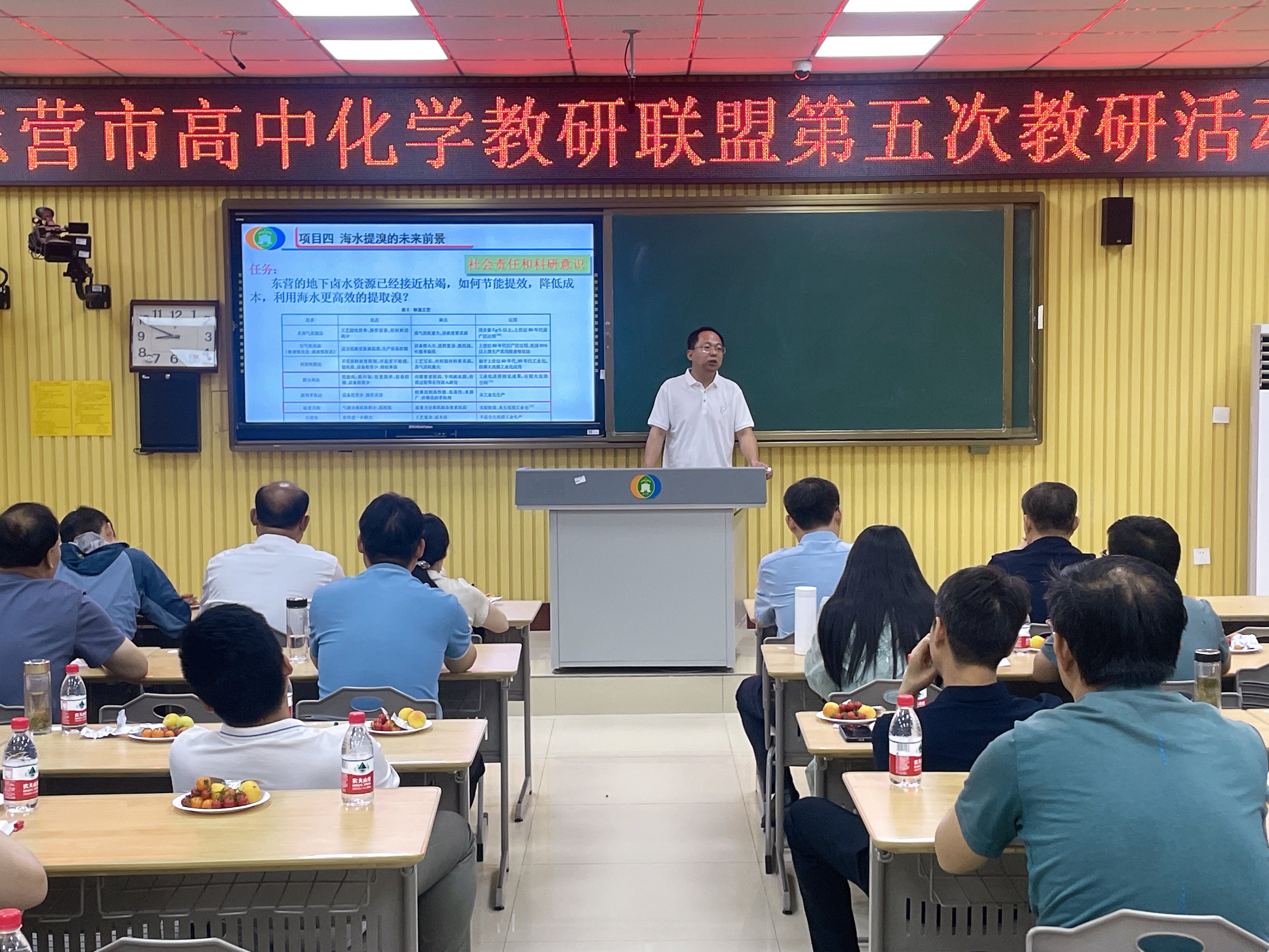 5月30日上午,东营市第一中学光兴楼,市一中、广饶一中、河口一中、市二中、垦利一中的化学人共聚一堂,召开高中化学教研联盟第五次教研暨攻关项目研讨活动,本次联合研训活动采用案例分享和专题报告的形式,围绕“课堂教学素养落实和学科能力培育”主题,依据《普通高中化学课程标准》(2017版),以鲁科版高中教材为依托,深入交流各学校高中化学课堂教学素养落实和学科能力培育的思考与具体做法,旨在推动普通高中课程改革,在评价育人、强化素养的课堂中,把立德树人根本任务落实到具体教育教学活动中。领航工作室成员王文明、魏海珍、周坤老师分别做典型发言,受到与会领导和老师们的一致好评。