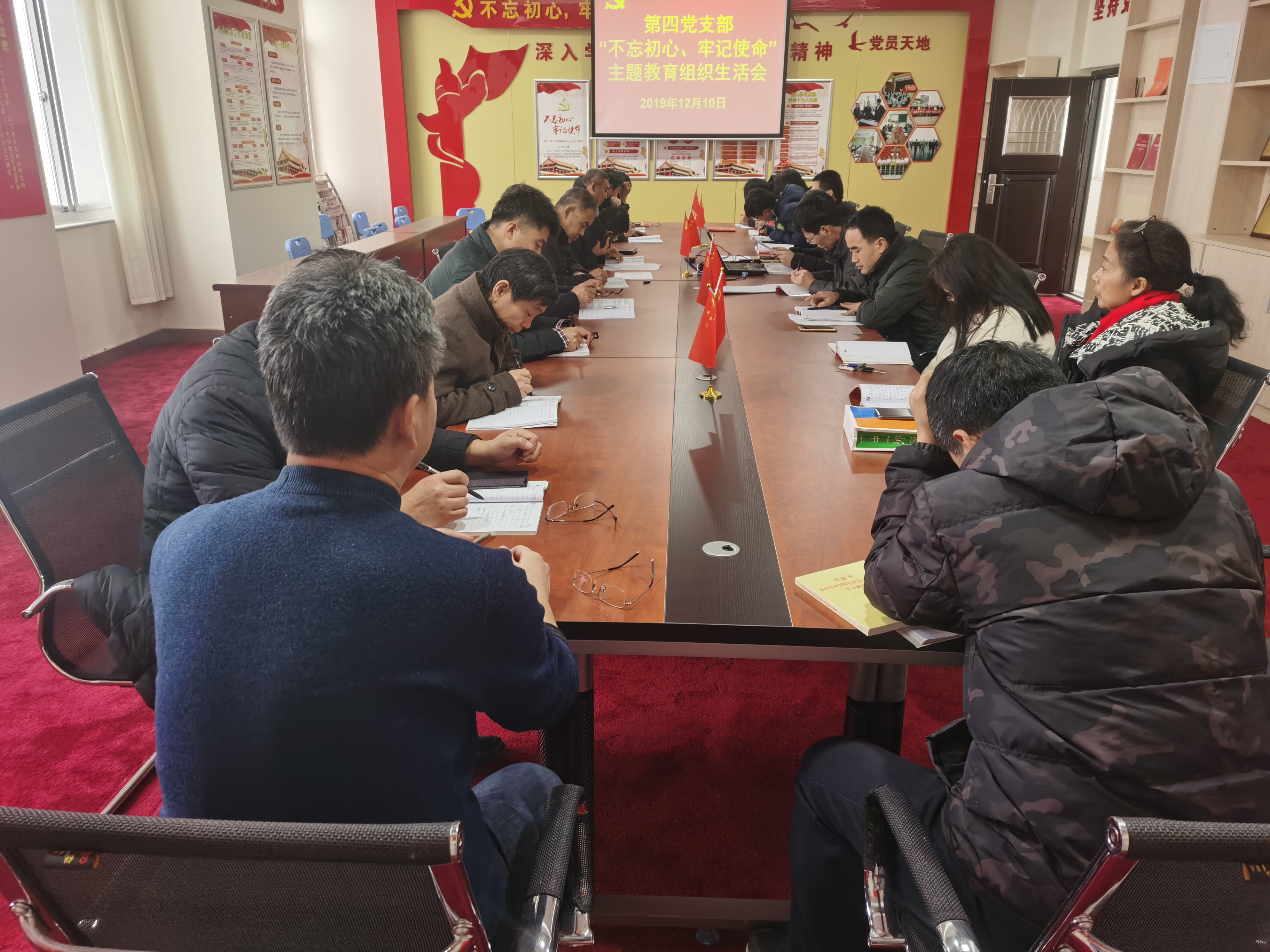 2019年12月10日上午,第四党支部全体党员,在办公楼四楼党员活动室,举行组织生活会及民主评议党员会议。会议由支部书记马占武主持。