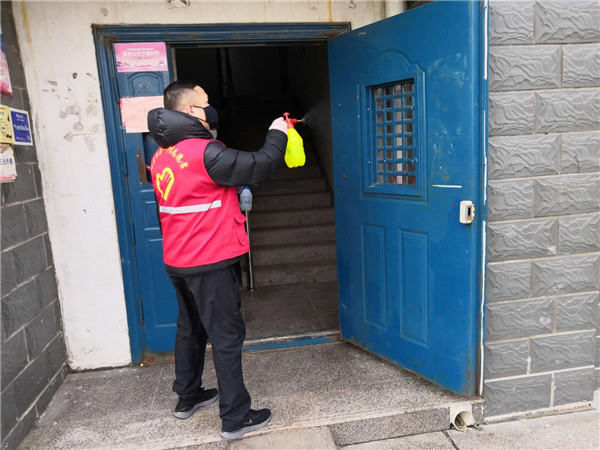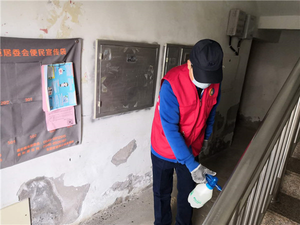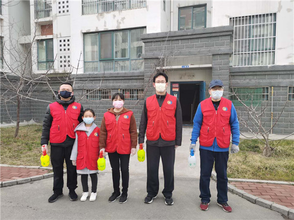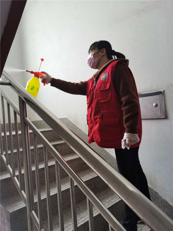 2020年3月2日,党员们一早就来到新兴社区盛世嘉苑小区。他们兵分两路,一路为特殊人群送去防疫物资并指导防疫知识,一路则积极开展楼宇消毒工作,并承包了四栋楼的消毒工作。