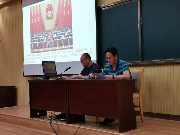 集中学习两会,做到学思践悟。支部组织委员刘培良带领大家集中学习两会精神。大家认真学习了习近平总书记在全国两会期间的重要讲话精神,并认真研读了政府工作报告,特别是有关教育领域的内容。还学习了民法典是新时代公民权利宣言书、建立香港国家安全法律制度和执行机制等方面的内容。并希望全体党员认真谋划新阶段工作思路,切实做到学以致用,切实把贯彻落实全国两会精神与教育教学工作实际结合起来,全面推动各项工作再上新台阶。