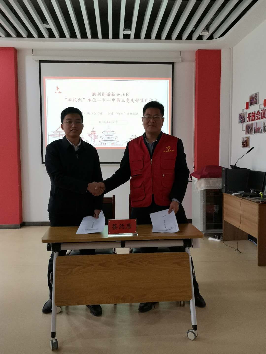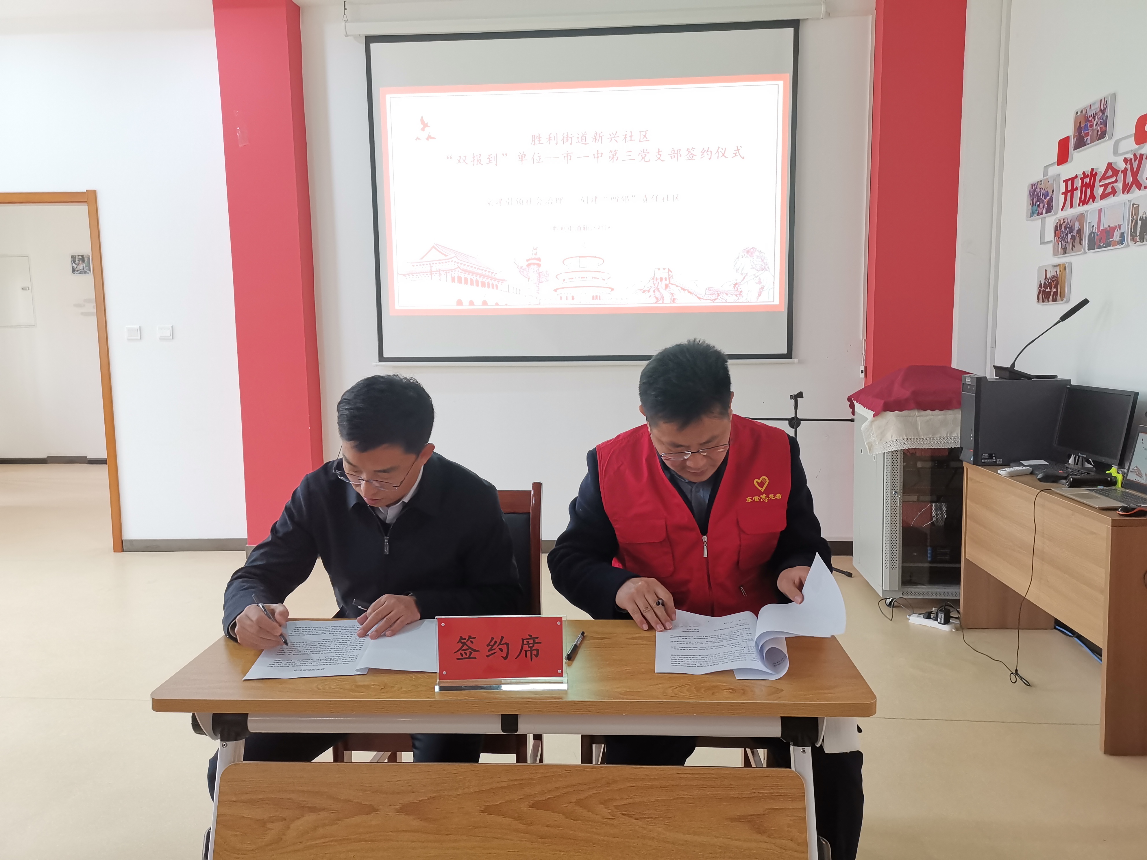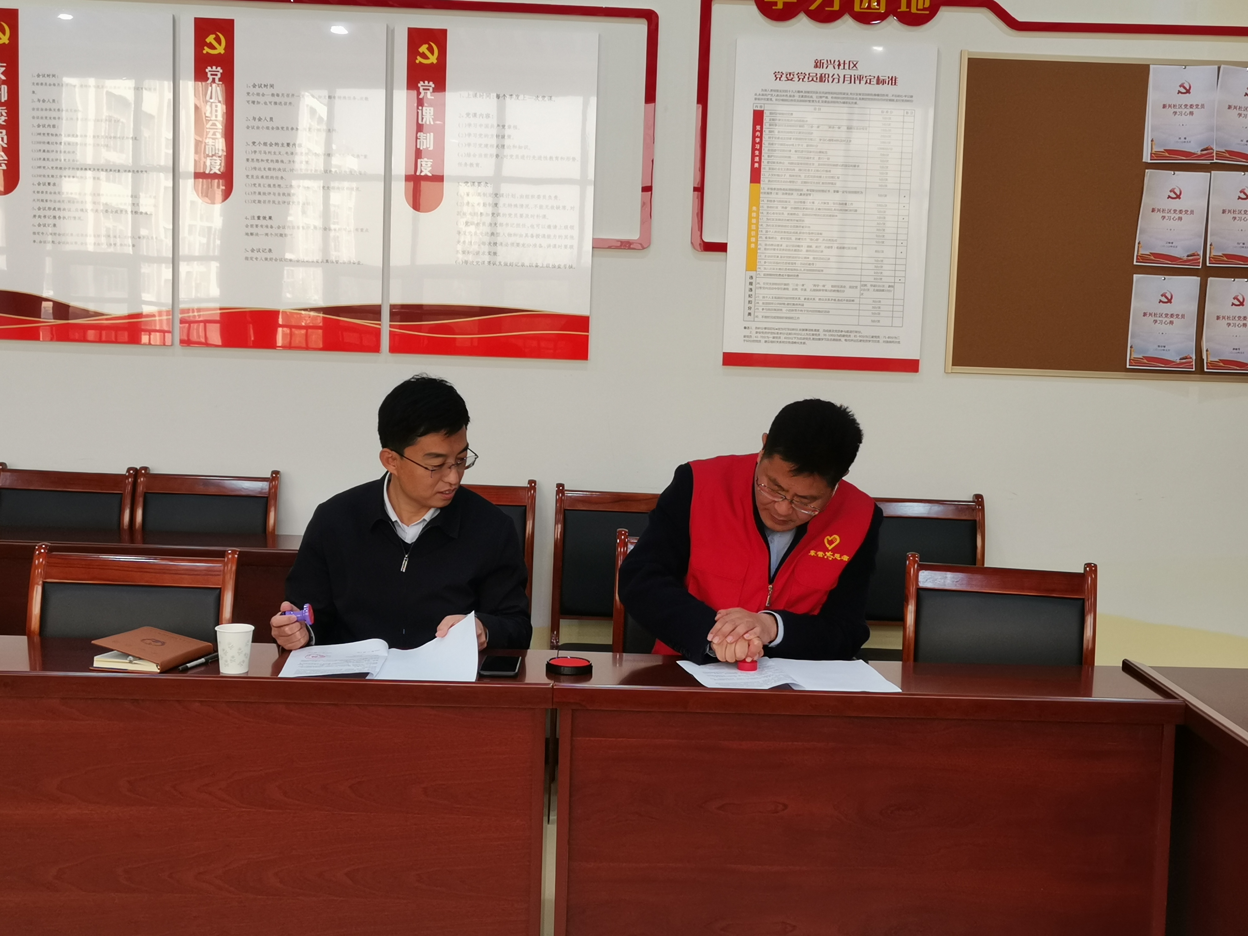 11月6日上午,第三支部组织党员深入新兴社区报到开展活动,并和社区一起签订了联系报到协议书。
