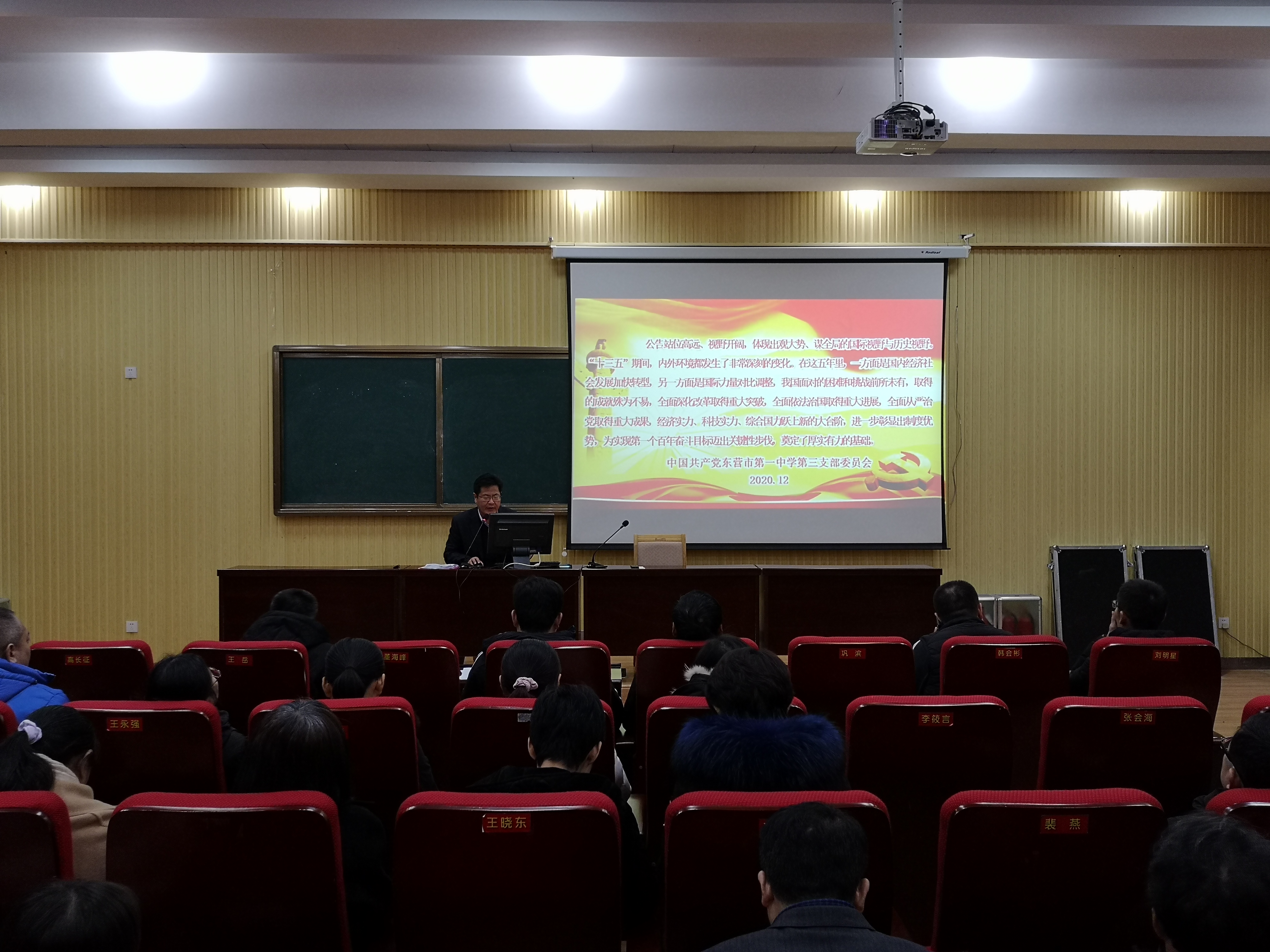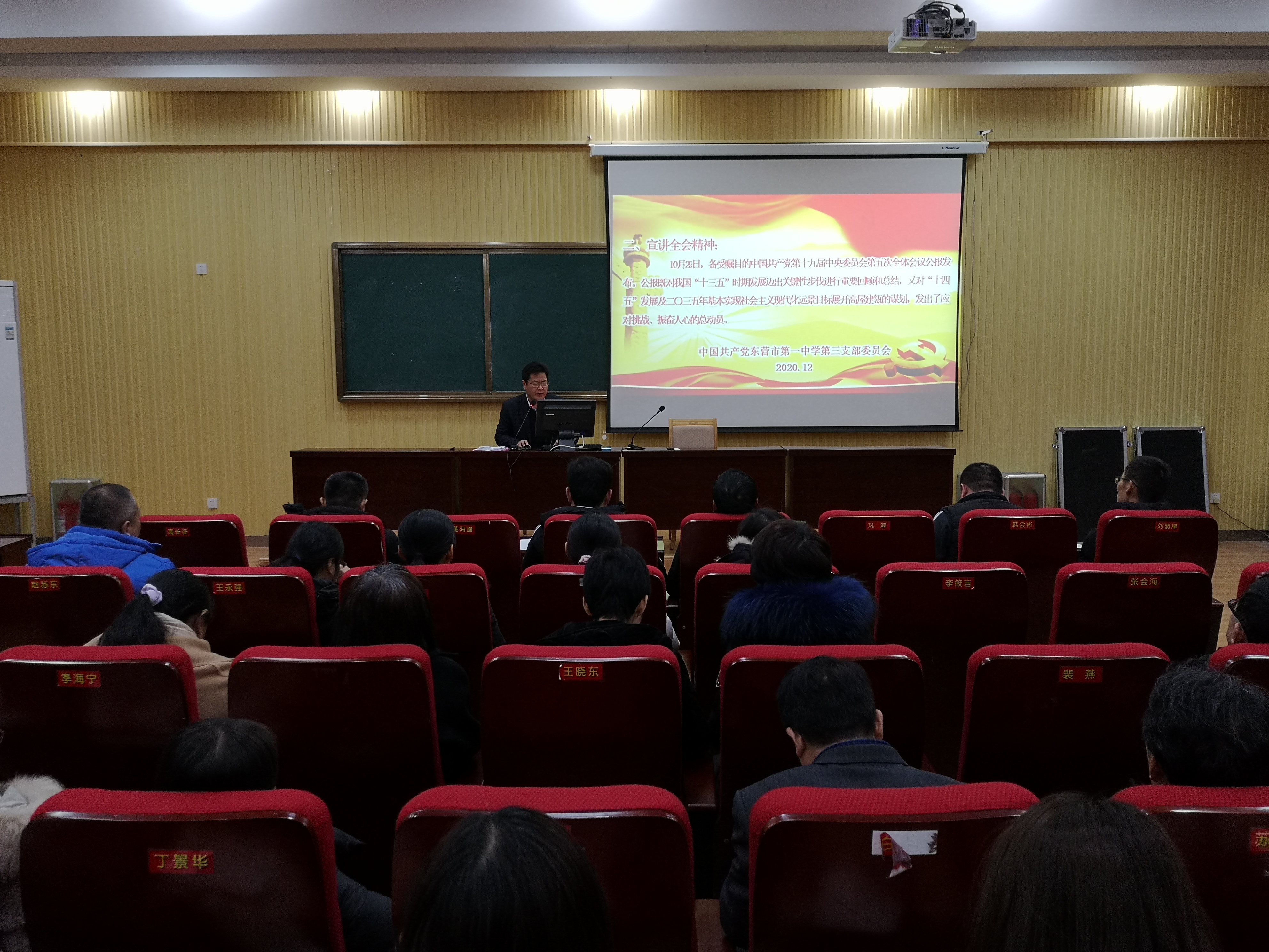 在支部书记李衡斌同志带领下,第三支部全体党员认真学习了党的十九届五中全会精神,重点学习习近平总书记重要讲话和《中共中央关于制定国民经济和社会发展第十四个五年规划和二〇三五年远景目标的建议》,吃透精神实质,把握核心要义,切实把学习宣传成果转化为加快落实贯彻新发展理念,提升干事创业能力水平,推动东营高质量发展的强大动力。