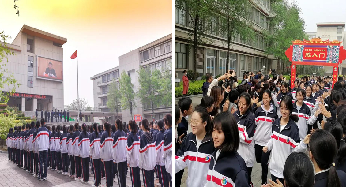 5月4日,东营市一中举行“风华正茂、青春颂党”十八岁成人仪式。仪式上,师生一起学习了习近平总书记对青年人的寄语,十八岁同学共同宣誓:“我是中华人民共和国公民……努力成为中国特色社会主义合格建设者和可靠接班人。”宏大响亮的宣誓声在一中的校园里回荡。学生们戴上成人纪念章,带着师长沉甸甸的嘱托,穿过成人门,昂首迈出了成人之路上坚实的第一步。