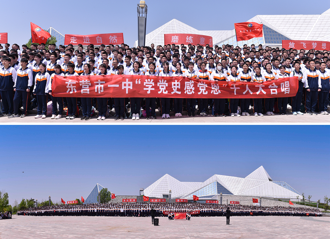 5月5日,为迎建党100周年,培养学生吃苦耐劳、团结互助的精神,锤炼学生不怕困难、勇于挑战自我、勇敢顽强的品质,感受热爱祖国,热爱家乡,热爱大自然的美好情感,东营市一中组织开展了“学党史 强信念 跟党走”远足踏春活动。高一2100余名学生和班主任参加。活动中,全体师生展示了“学党史 感党恩”千人大合唱。铿锵的旋律,嘹亮的歌声,整齐的节奏,学生们精神饱满,神情庄严,情感浓烈,展现了一中学子的爱国之心和中华崛起的民族自豪感。