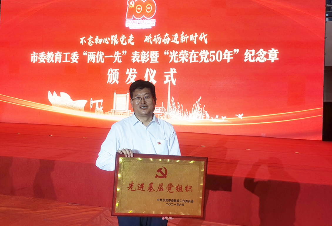 在东营市“两优一先”暨“实干突破”大竞赛大比武表彰中,史本泉校长获得全市“实干突破好带头人”称号,全市教育系统唯一获此殊荣,并上台接受表彰;赖声平同志获全市优秀党务工作者,并作为教育系统唯一党务工作者代表上台领奖。