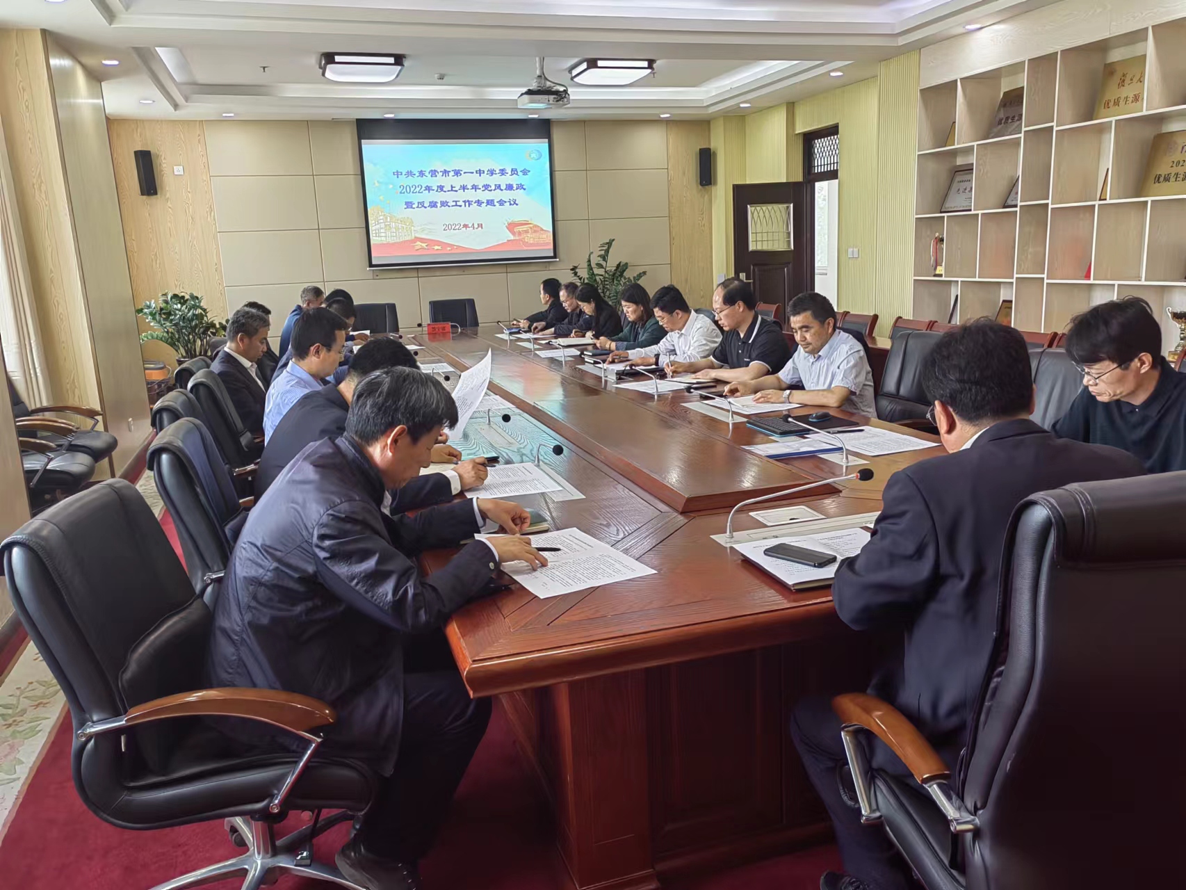 为深入推进党风廉政建设和反腐败斗争,坚决落实全面从严治党主体责任,市一中党委于4月21日下午在第一会议室召开2022年上半年党风廉政暨反腐败工作专题会议,学校党委书记、校长史本泉主持会议并讲话,校级领导、中层干部参加会议。