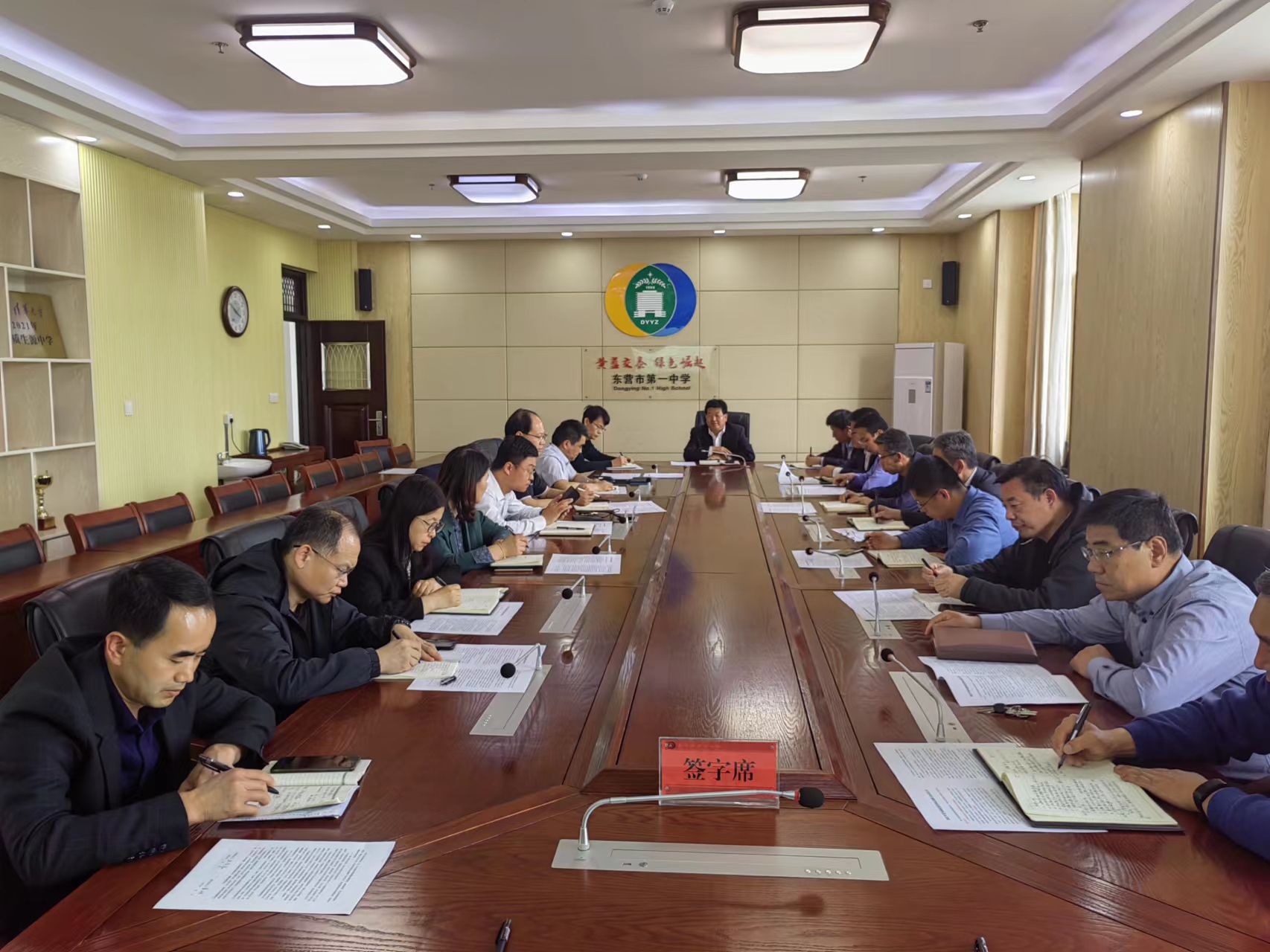 党委委员、副校长马占武同志宣读了《东营市一中2022年党风廉政建设和反腐败工作要点》,党委委员、副校长李士刚同志宣读了《东营市一中2022年廉政风险点及防控措施》,并对防控措施进行了部门分解。与会人员集体观看了廉政警示片,并签订了2022年党风廉政建设和反腐败工作目标责任书。