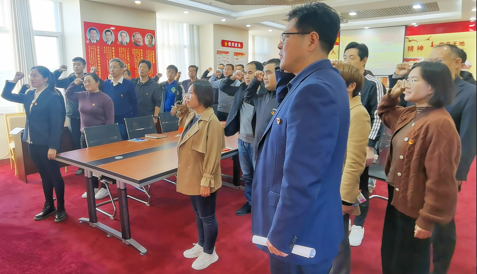 为热烈庆祝中国共产党第二十次全国代表大会胜利召开,10月17日下午,第四党支部在党员活动室召开了“重温入党誓词、坚定理想信念”主题党日活动。本次大会分两个阶段进行,全体党员参加。
