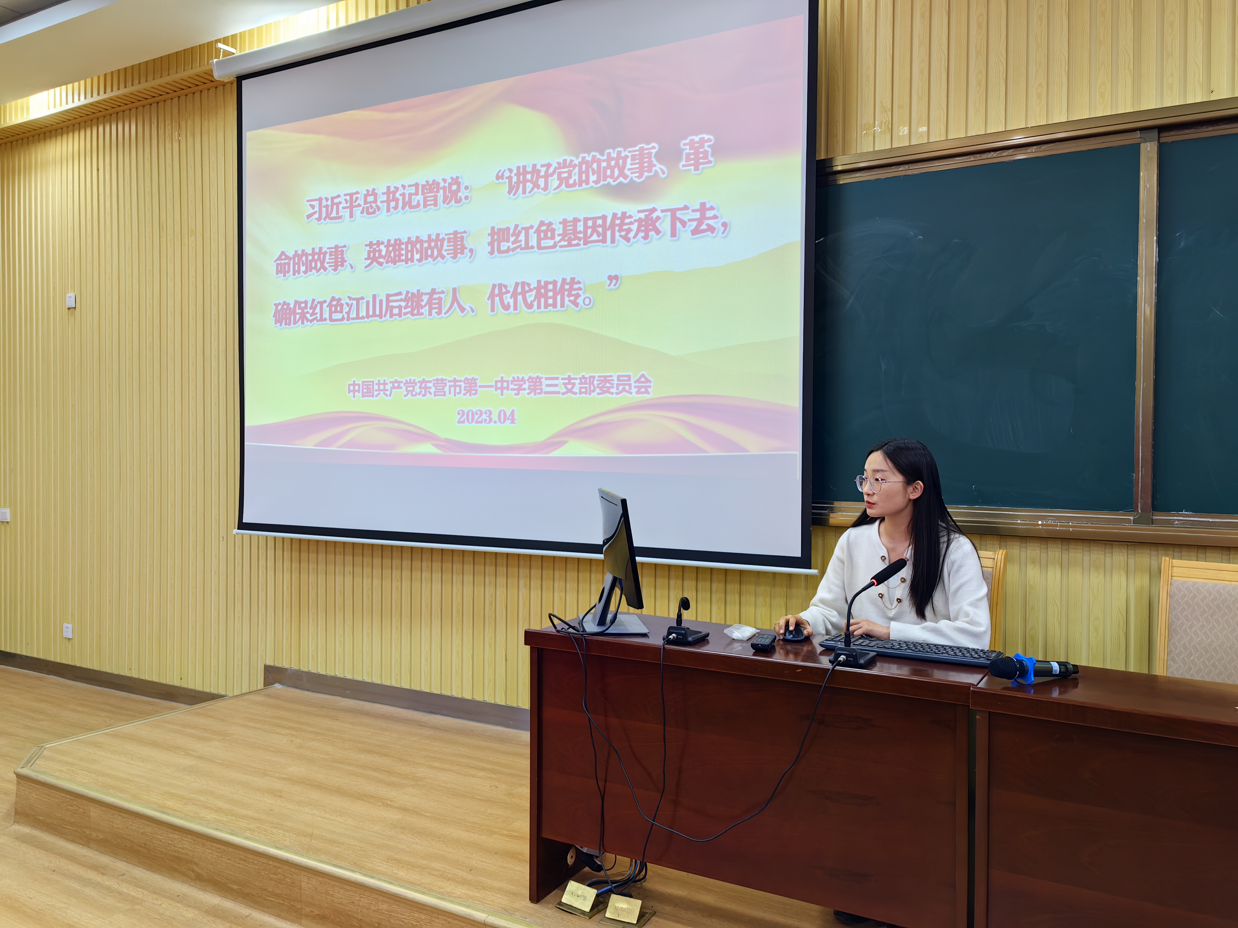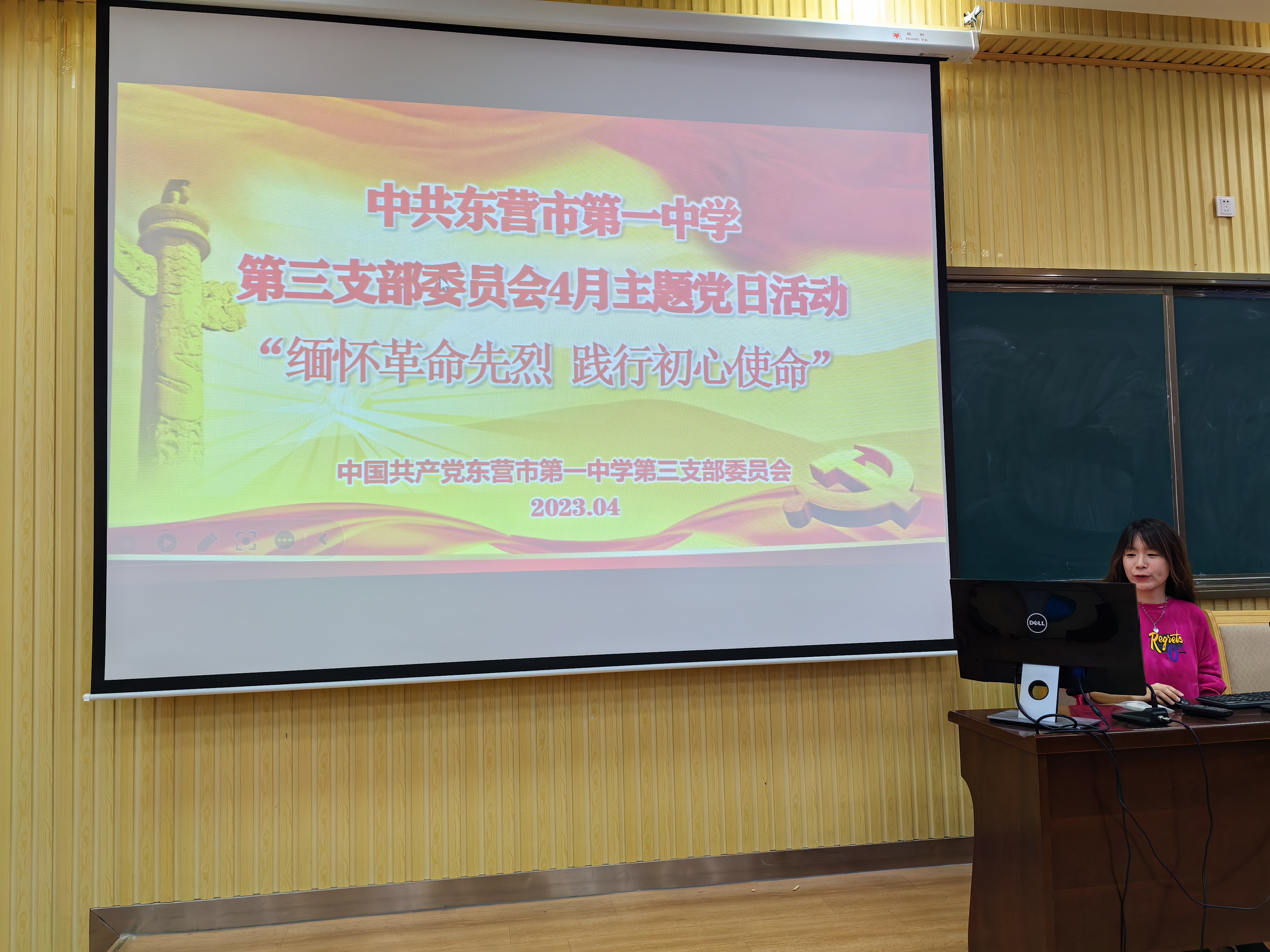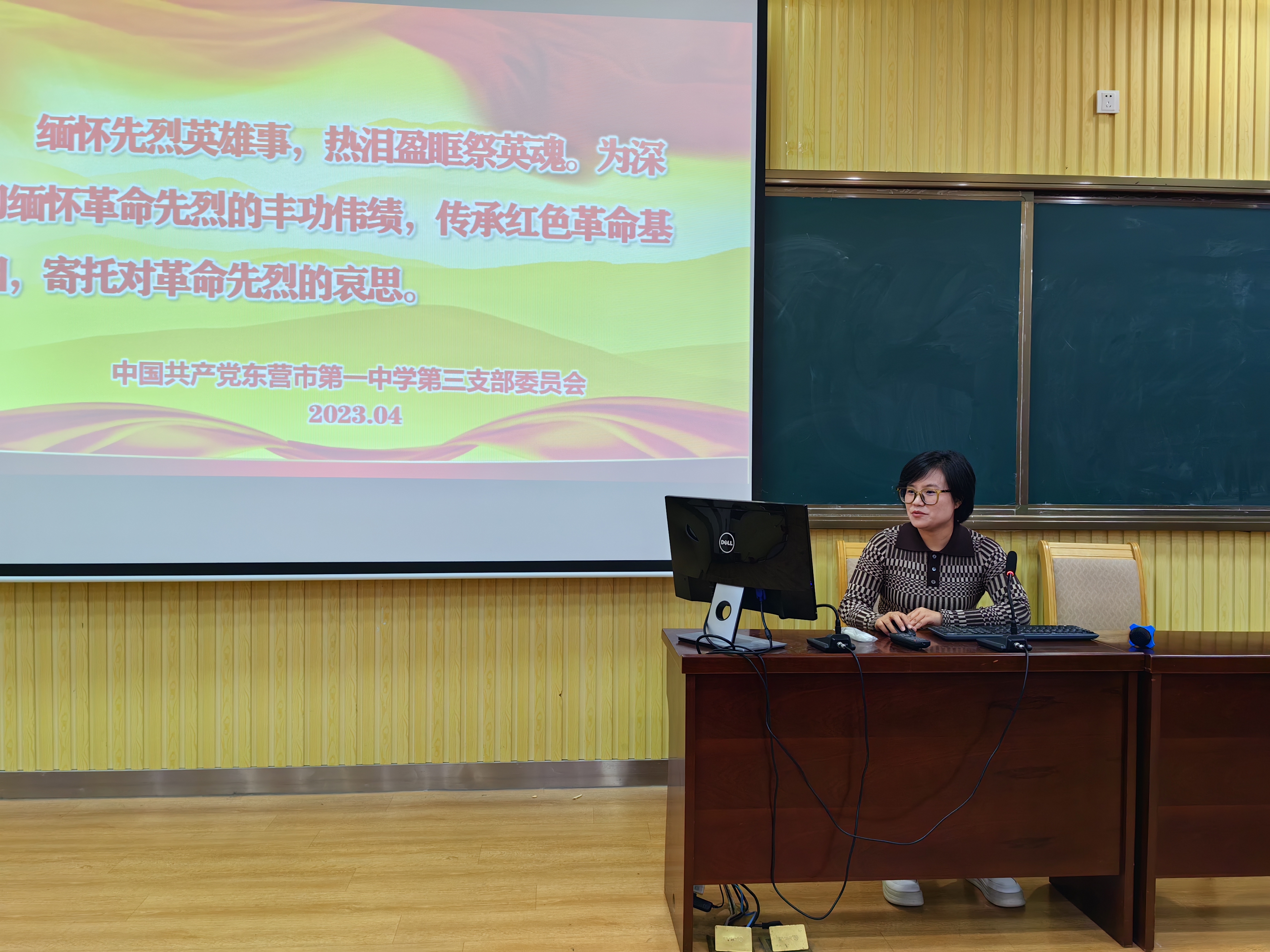 缅怀先烈英雄事,热泪盈眶祭英魂。为深切缅怀革命先烈的丰功伟绩,传承红色革命基因,寄托对革命先烈的哀思。东营市一中第三党支部于4月7日上午,在高一阶梯教室开展“缅怀革命先烈 践行初心使命”主题党日活动。