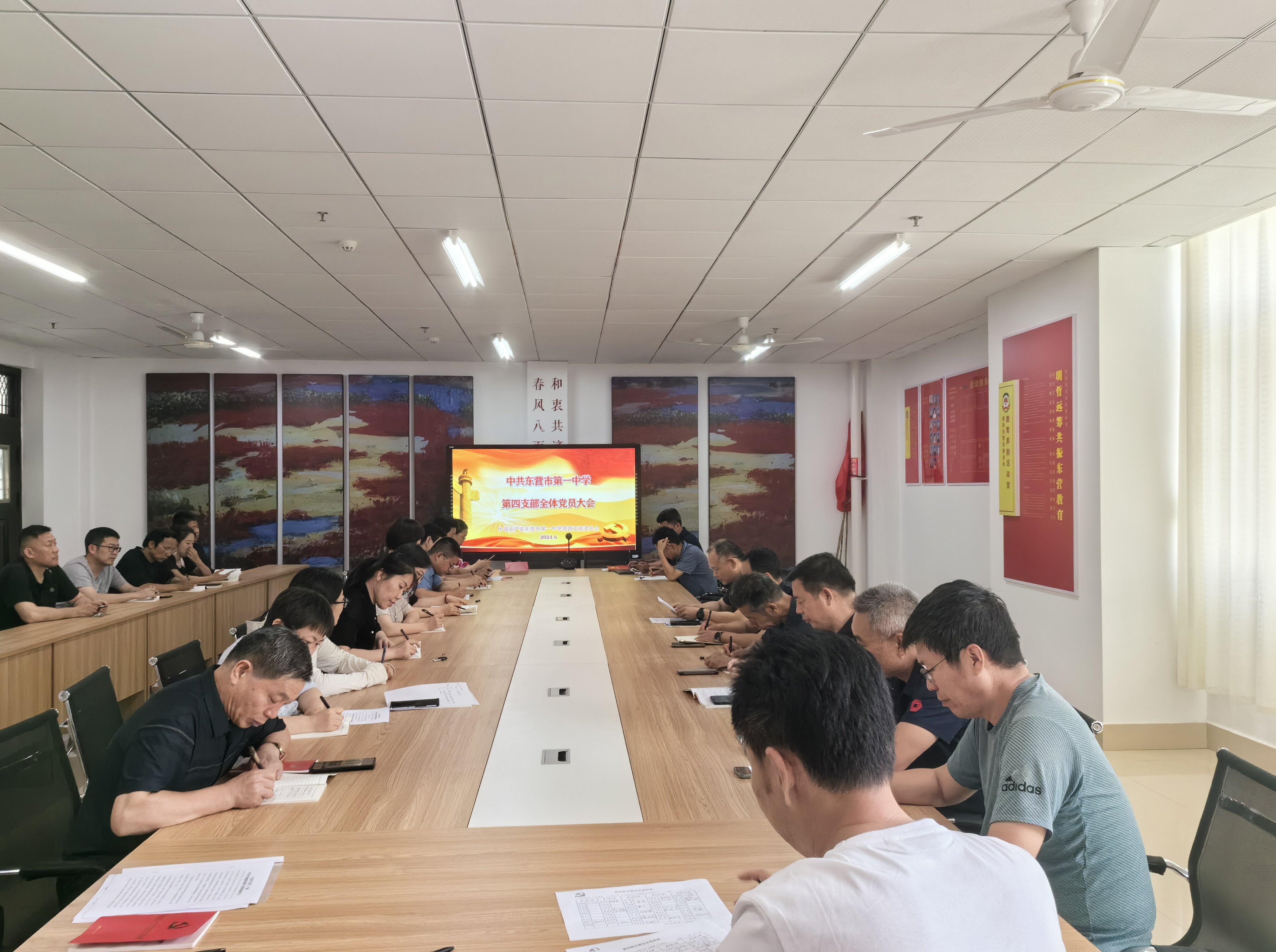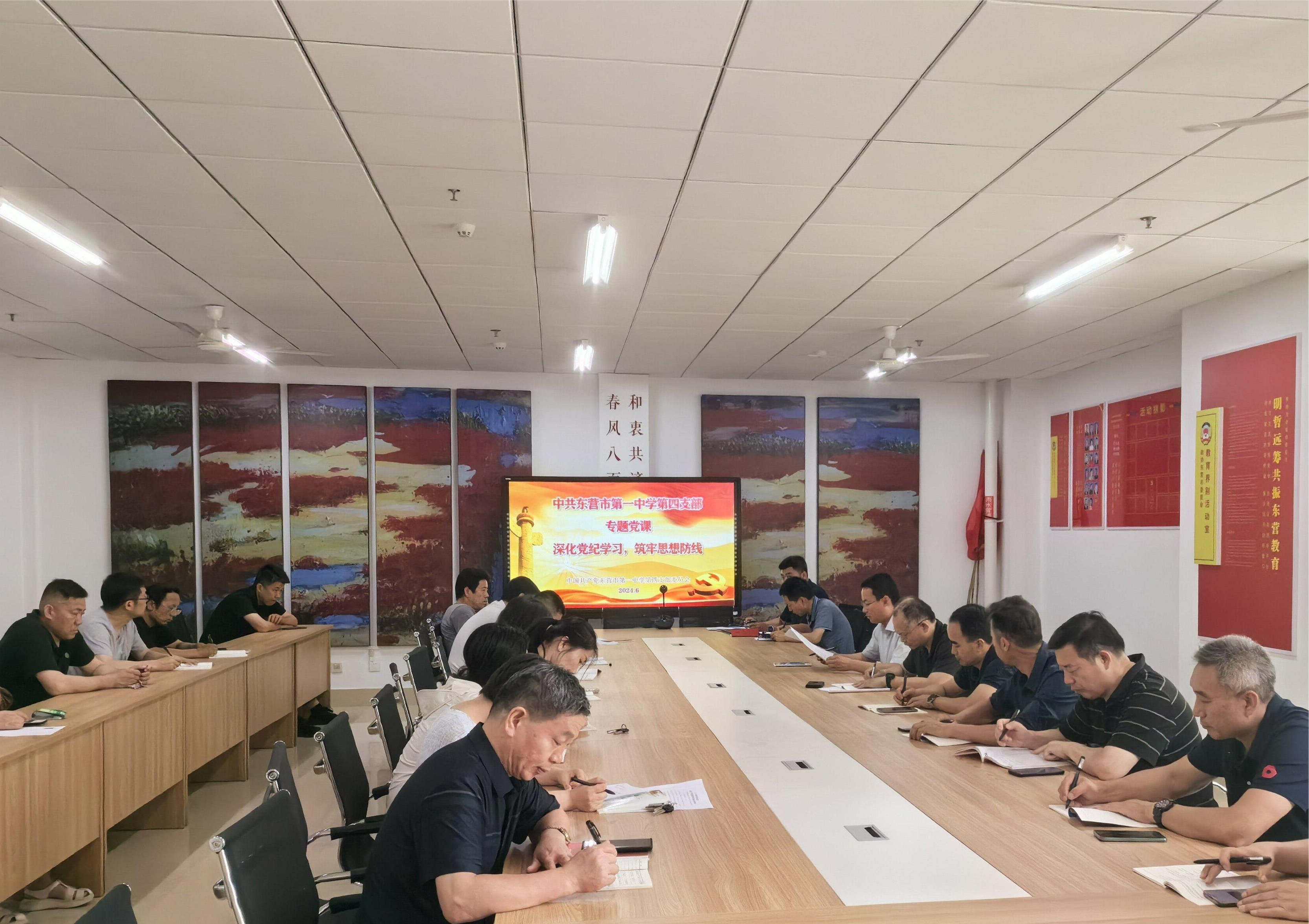 为进一步强化党员纪律意识,进一步提升我校党支部的组织力、战斗力、凝聚力,6月24日下午,第四党支部召开迎七一“明规矩、知敬畏、守底线”6月主题党日暨党员大会活动,本次会议由党支部副书记巩欣锋同志主持,第四党支部全体党员参加。