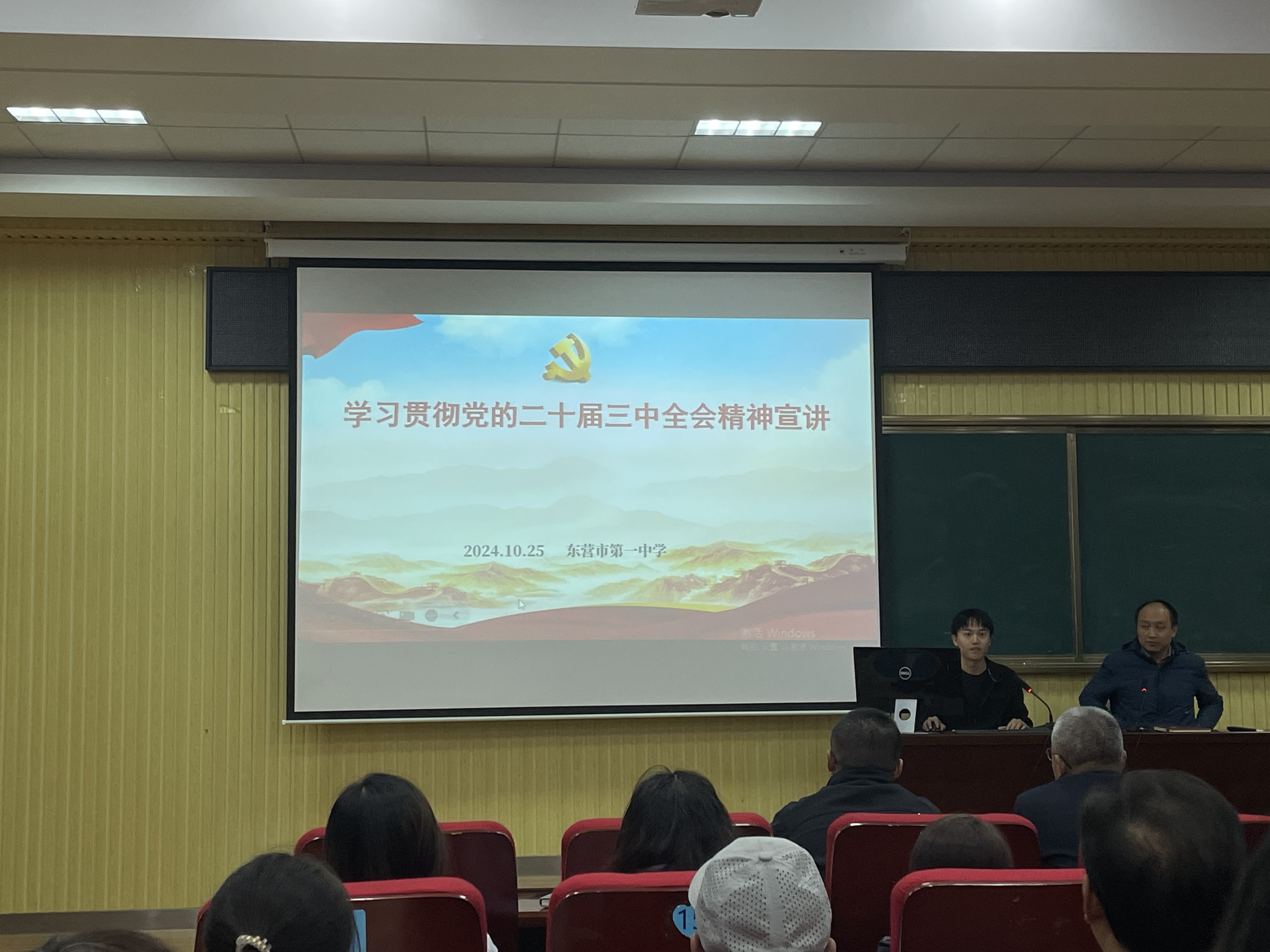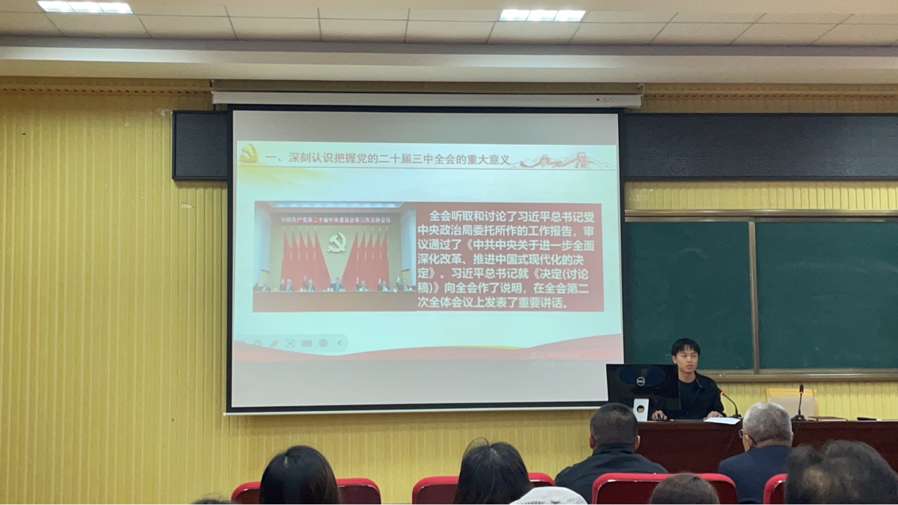 为深入学习贯彻党的二十届三中全会精神, 推动全会精神在学校生根发芽、落地见效,10月25日,第一党支部举办学习贯彻党的二十届三中全会精神宣讲报告会。报告会由东营市委教育工委宣讲团成员李建庚主讲,支部书记娄超主持,党支部全体党员参加会议。