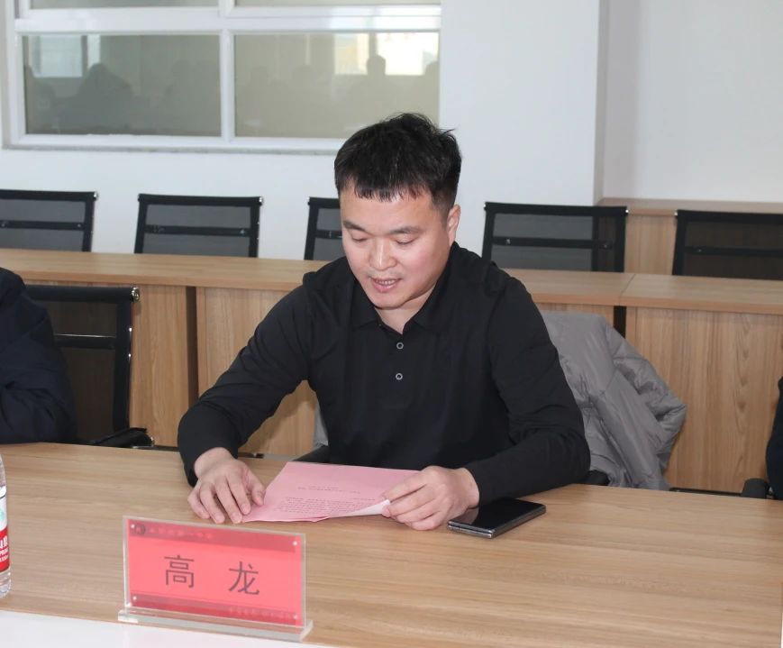 山东水安建设有限公司总经理、2004级校友高龙宣读《东营市新业态企业商会入会申请书》