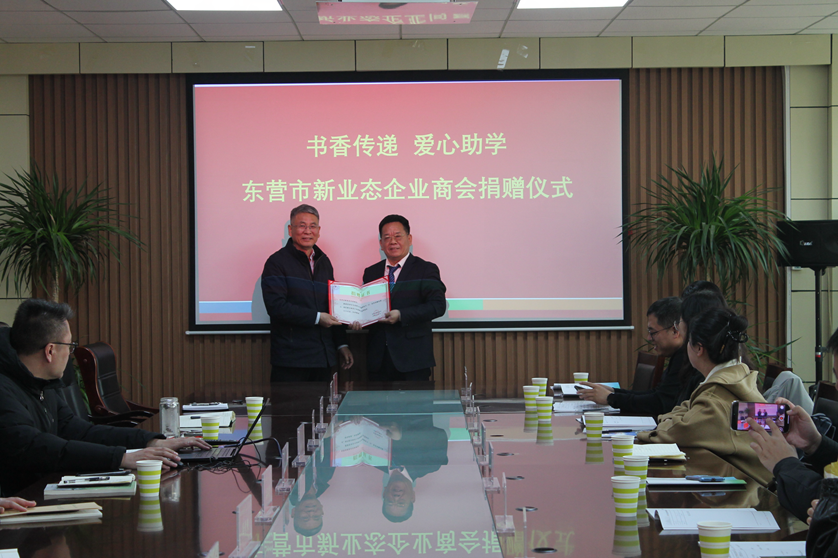 座谈会后,东营市新业态企业商会向春晖小学捐赠了图书,以实际行动支持学校教育事业的发展。
