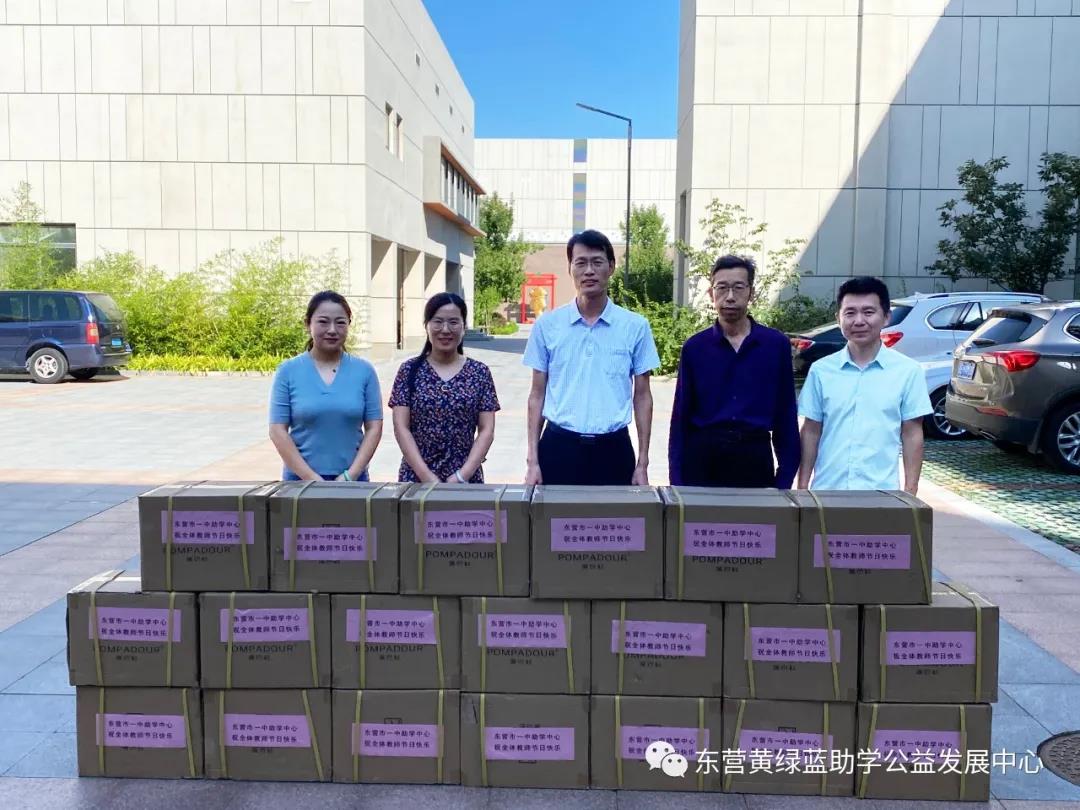 2021年9月8日下午,东营市一中助学中心办公室主任单超代表助学中心向母校捐赠价值十余万元的助学物资一宗,并祝母校全体教师节日快乐!副校长马占武,校友办主任赵吉山代表校方出席了捐赠仪式。助学中心办公室王欣、梅华参与了此次捐赠活动。