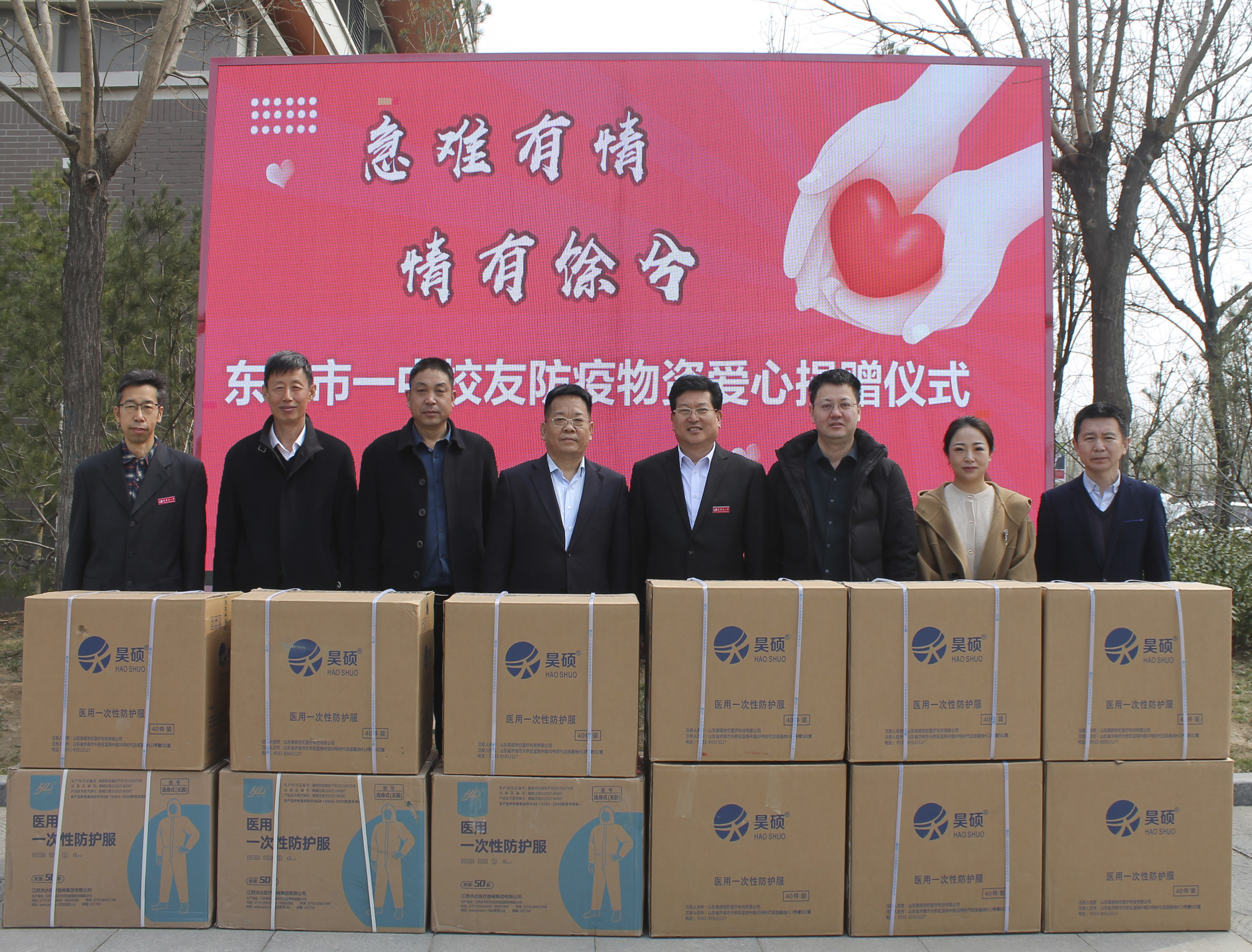 2022年3月23日,阳光明媚,春风和煦,市一中校园里书声琅琅,生机盎然。在行政楼西侧广场,以“急难有情,情有馀兮”为主题的东营市一中校友防疫物资爱心捐赠仪式正在举行。校党委书记、校长史本泉,副校长李士刚,校友办主任赵吉山,助学中心理事长张利,副理事长高汝国,办公室主任单超,理事孙明山等参加捐赠仪式。