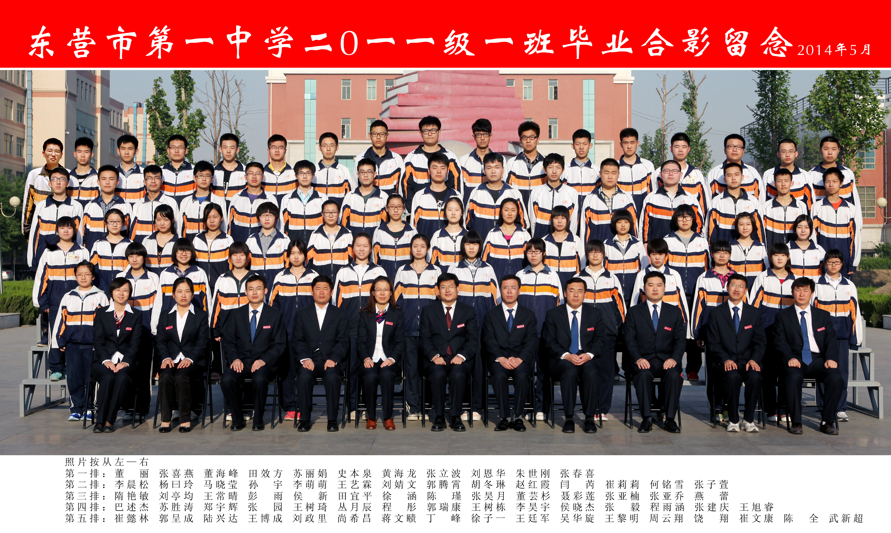 东营市第一中学2011级(2014届)1班学生毕业合影