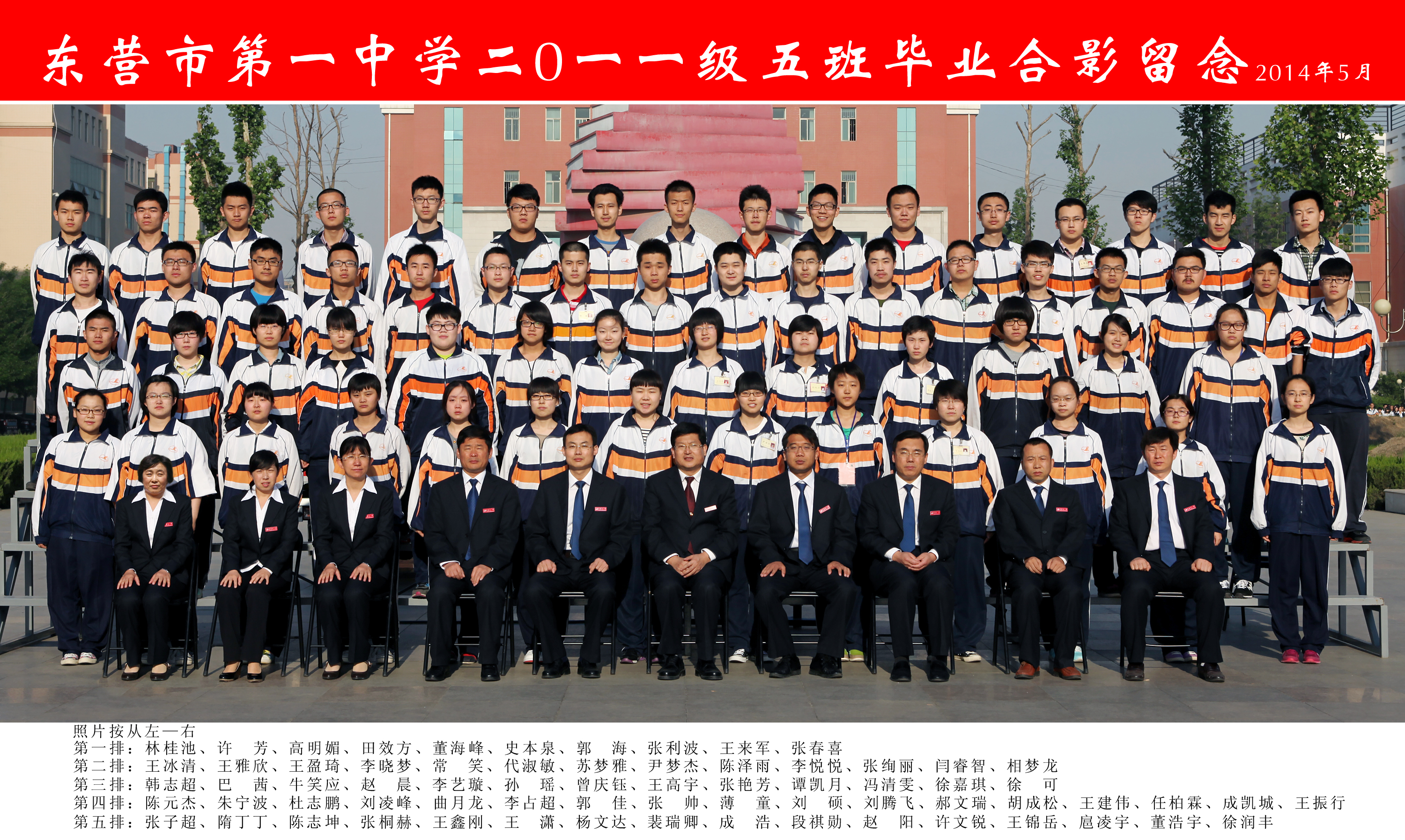 东营市第一中学2011级(2014届)5班学生毕业合影