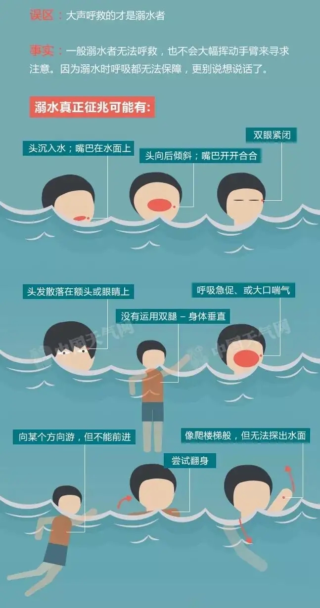 溺水者的营救黄金时间是事发30秒。如能及时发现溺水迹象,生命或可挽回!如何辨别溺水者?牢记这7种迹象。