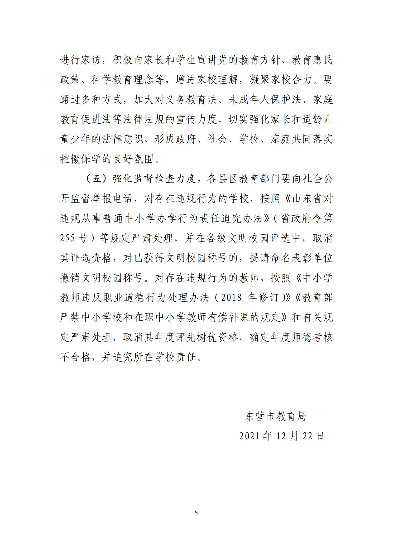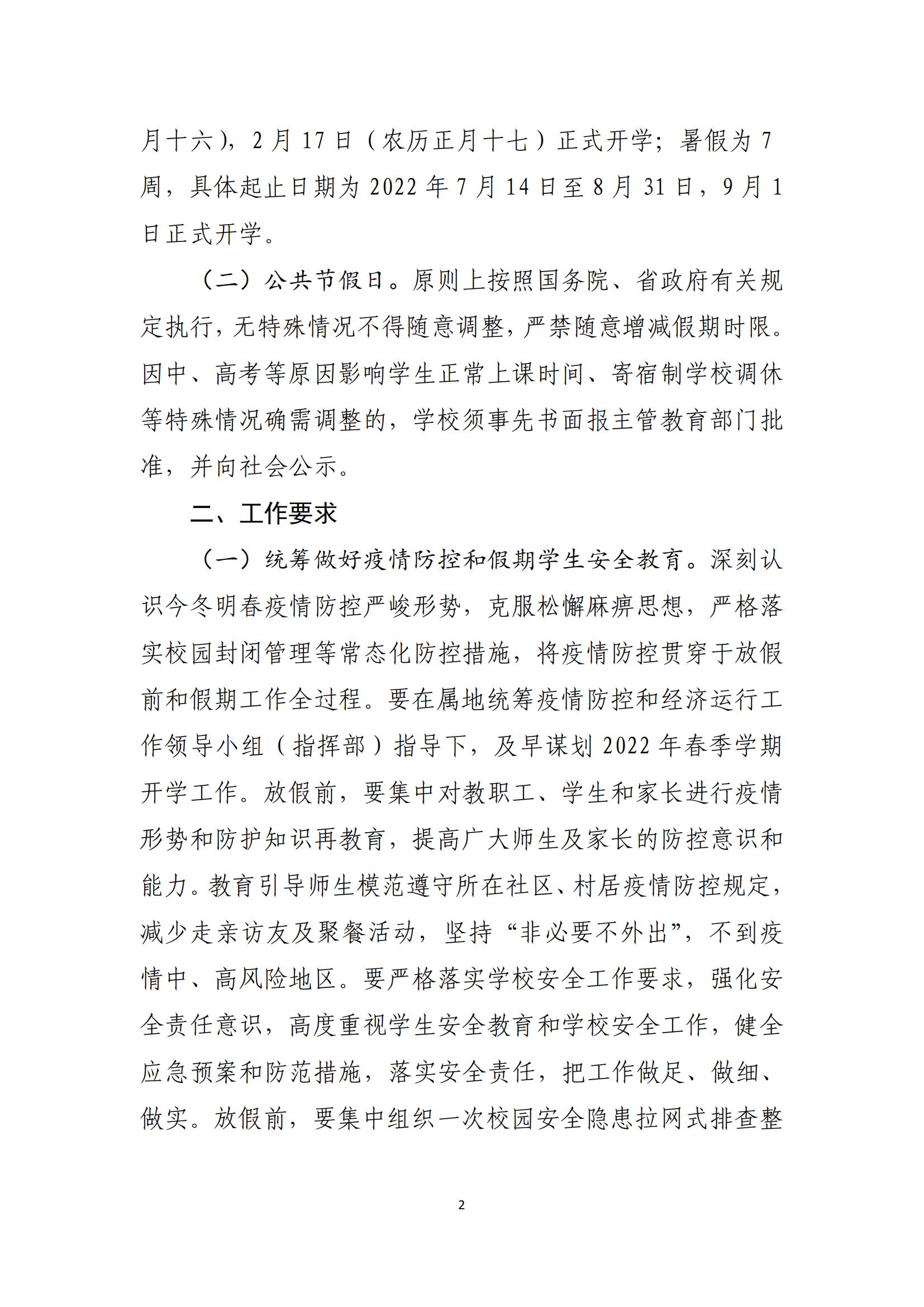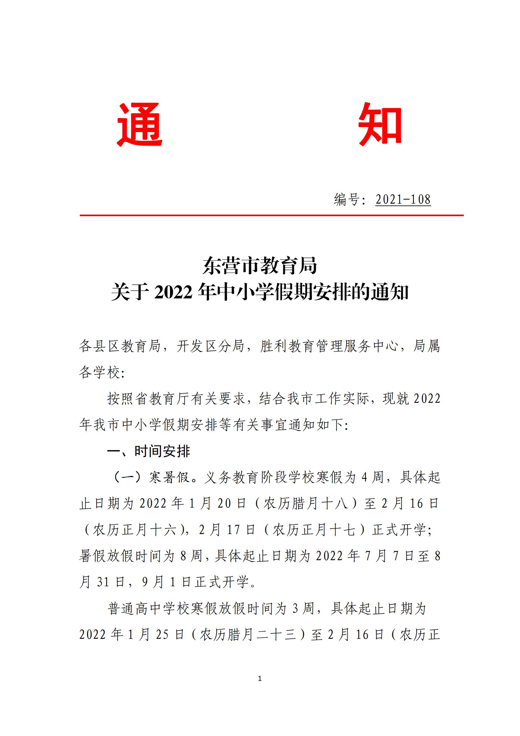 转发《东营市教育局关于 2022 年中小学假期安排的通知》