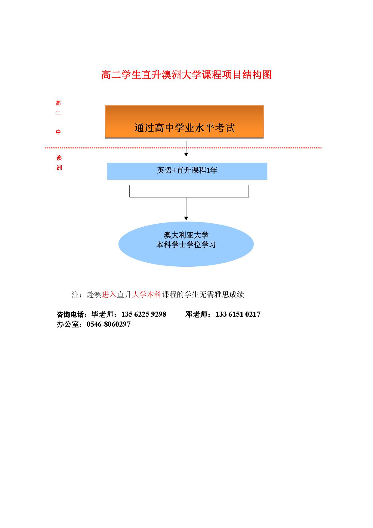 为了满足部分家长希望孩子接受更好教育的愿望,在东营市部分高中学校与澳大利亚有关学校建立校际友好关系的背景下,我们设计了高中学生直升澳大学本科课程。