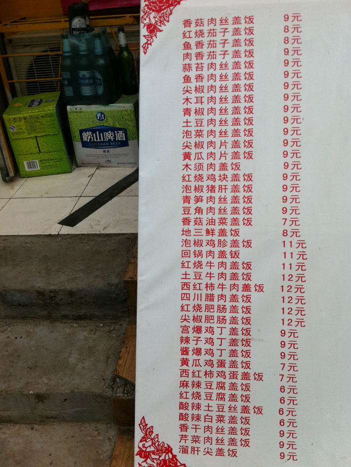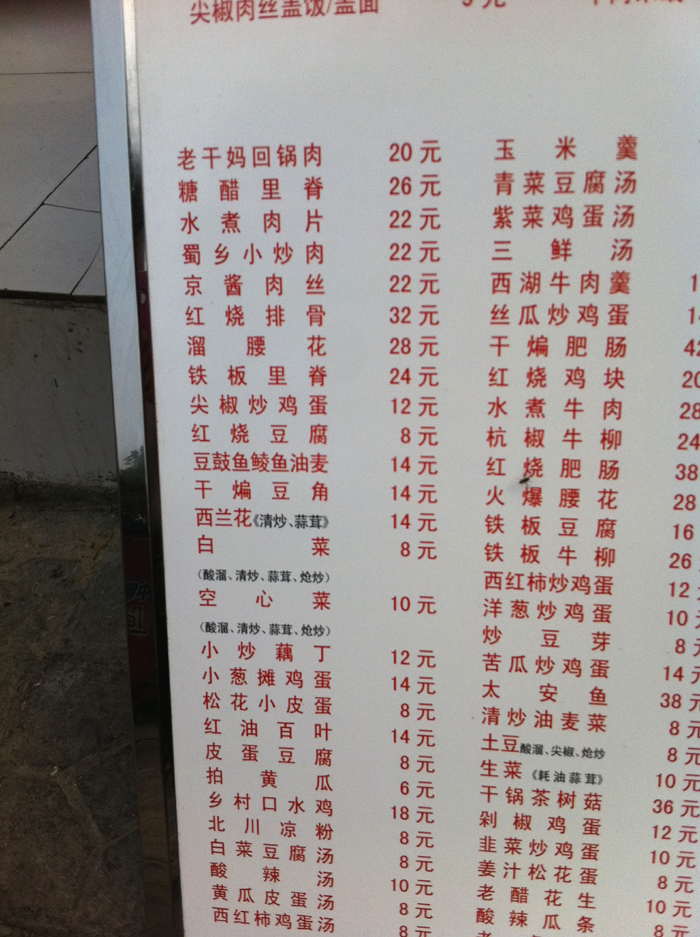 东城胶州路北段一小餐馆门前的价格牌