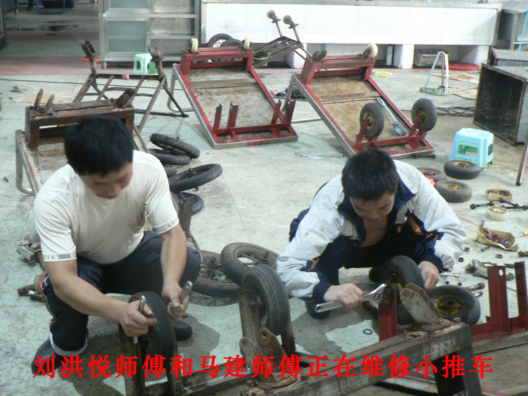 经过近一个假期的辛勤劳动,南北两食堂1200张餐桌被粉刷一新;维修小推车23辆;焊制防鼠网16个;粉刷了145个暖气片;并对南食堂地下两台排污水泵进行了维修、清除了油污;参与了清洗了五组排烟罩的工程;维修南食堂大炉灶3台,维修清理了南食堂的排风管道,对南北食堂的电路进行了检修,将食堂和面机进行了清理。