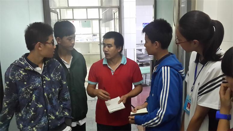 我校食堂担负着为全校4000余名师生提供日常伙食的任务,每顿饭按时、保质保量的供应,这个看似简单的任务是食堂职工用每天近15个小时的工作强度来保证的。这次参观这是2014级膳食会刚成立不久,第一走进食堂操作间和食堂师傅们零距离交流。同学们表示回去后,要把在食堂了解到的告诉同学们,让同学了解食堂在安全质量方便所作的工作。