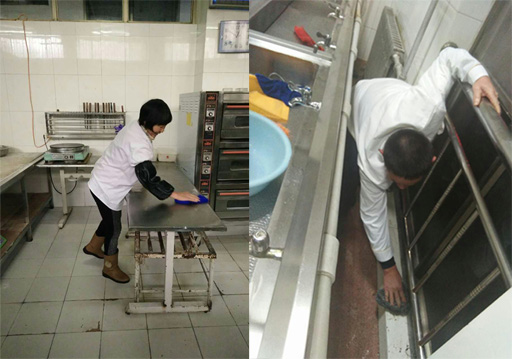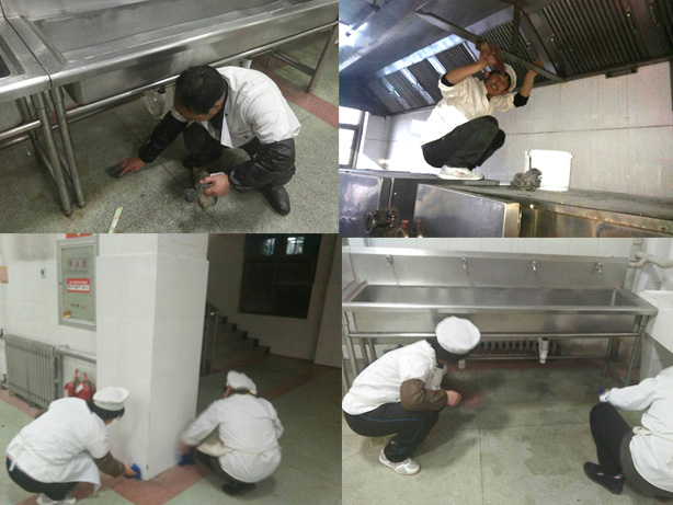 为确保卫生清扫不留死角,食堂各班组专门召开了工作要求会,强调了卫生标准要求。食堂职工牺牲休息时间,利用周末、下班后的时间,卫生区责任到人,划片清理。