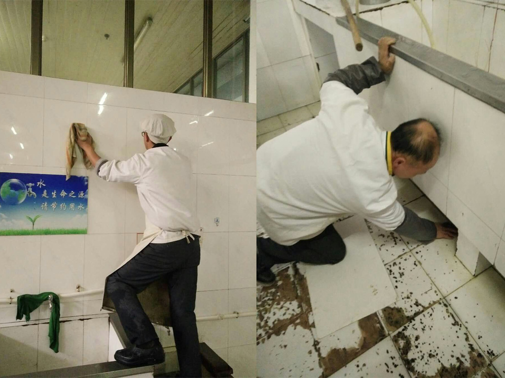 职工们不怕脏不怕累,不怕冰冷的凉水,有的俯下身子,有的登梯爬高,洗手池下、墙面高处、沾满油渍的油烟机,职工们像过年家里的除旧卫生,将食堂进行了一次彻底的卫生大扫除。