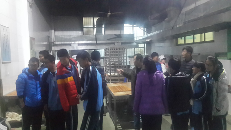 同学们参观了解各个加工流程