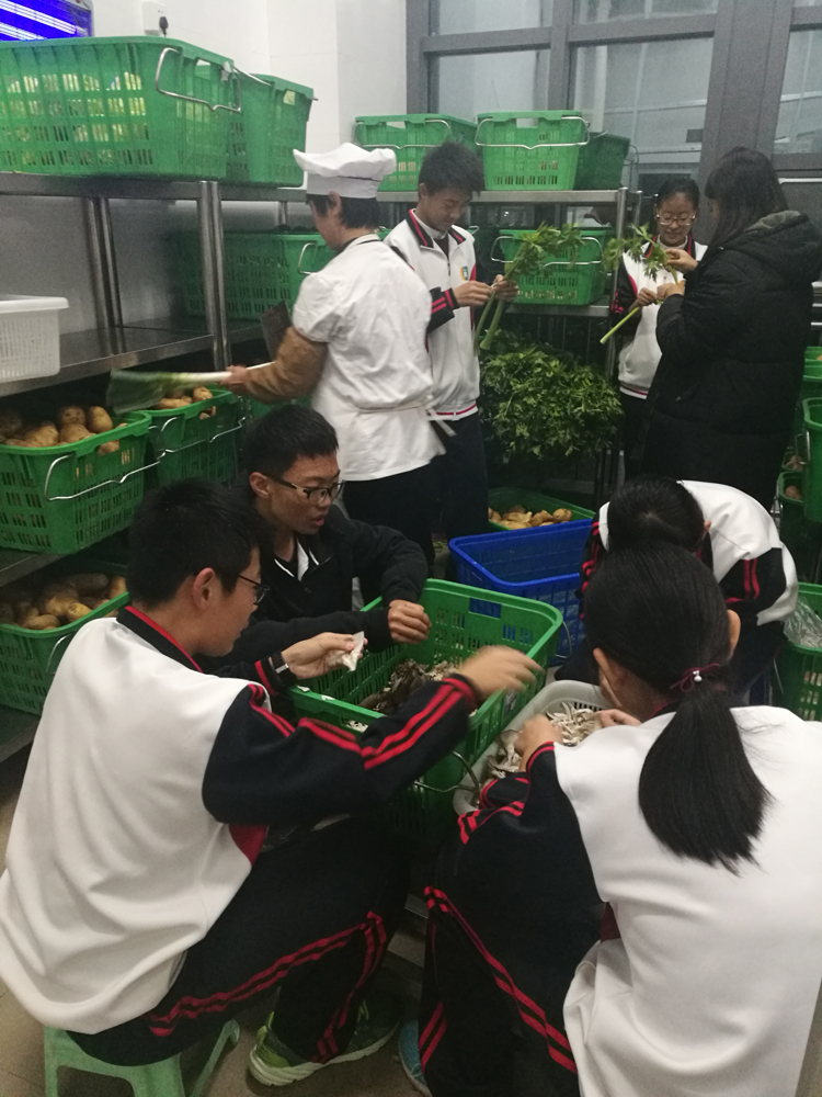 劳动创造财富,劳动创造未来。勤劳是中华民族优秀的品质之一。为丰富高一周二自主活动时间内容,高一学生膳食会组织了16名同学来到学校食堂操作间,参加了一次有意义的劳动实践活动。同学们来到食堂操作间,师傅们给同学们安排了劳动任务,介绍了任务要求,同学们很快就投入到劳动当中。40分钟不到,同学们帮食堂摘了两大筐菜,剥了一大盆鸡蛋。