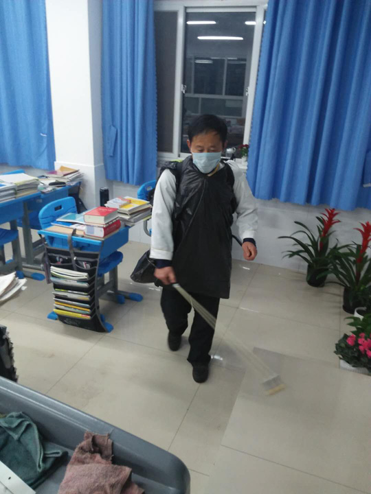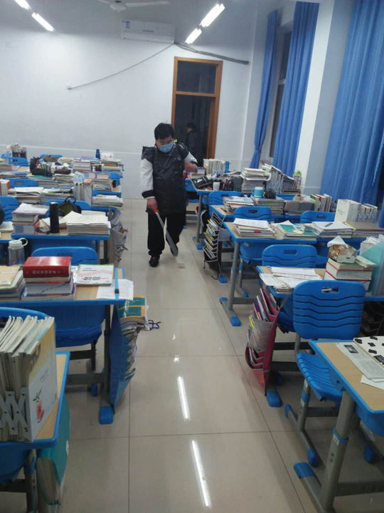 为预防和控制流感,12月15日晚自习后,按照学校领导安排,总务处人员集体行动对教室及公共场所进行了消毒杀菌行动。总务处李主任亲自安排任务,带领大家进行了消毒。食堂抽调了10名职工参与了本次消毒任务。今年流感较往年呈现更为厉害,学校领导召开紧急会议,安排部署了相关预防控制流感措施,食堂也为学生熬制了姜糖水,医务室专门为学生配置了预防流感、增强抵抗力的中草药汤。学校上下共同为打赢这场控制流感仗而努力。