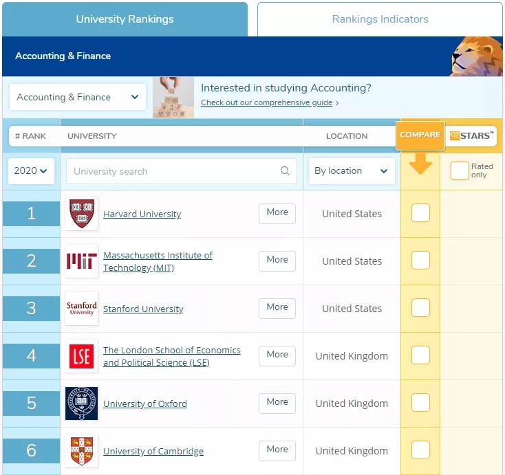 作为商科中的热门专业之一,Accounting & Finance排名的激烈程度自然不用多说。