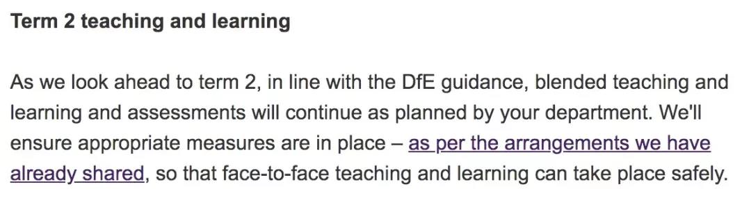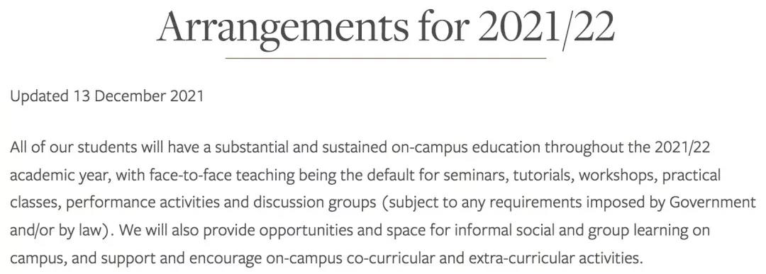 不过学校也表示,了解到部分国际学生可能会因为疫情下的旅行限制而无法及时返校,学校会为这部分学生尽可能提供两到三周的网课,直至学生可以返校。