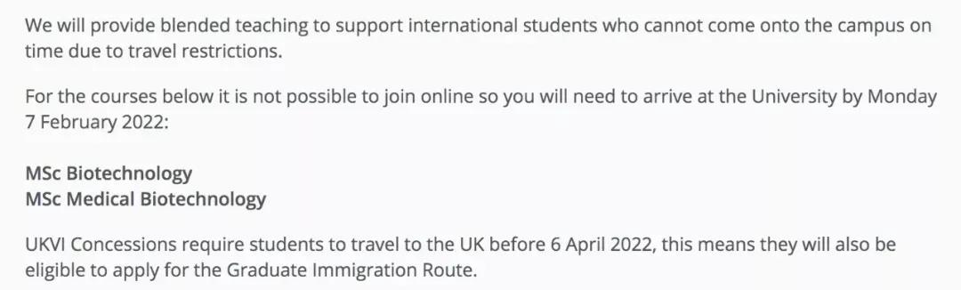 但以下课程不能上网课,所以相关学生需在明年2月7日之前返校:MSc Biotechnology和MSc Medical Biotechnology