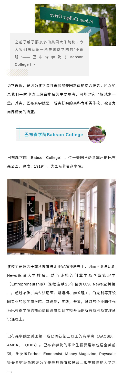 留学百科 | 低调名校——巴布森学院:常年蝉联全美创业学第一,企业家的摇篮