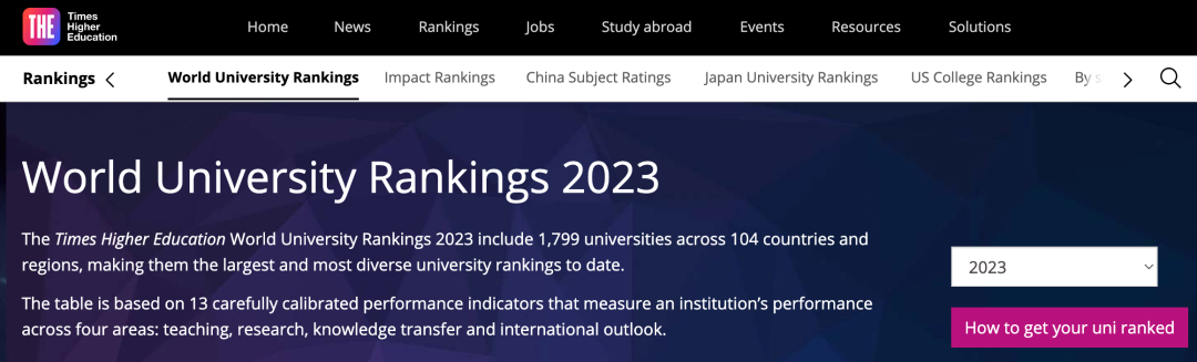 2023年泰晤士世界大学排名基于 13 项经过仔细校准的绩效指标,衡量高等院校在四个核心领域:教学、研究、知识转移和国际视野,可以说是一份相对“学术”的排名。