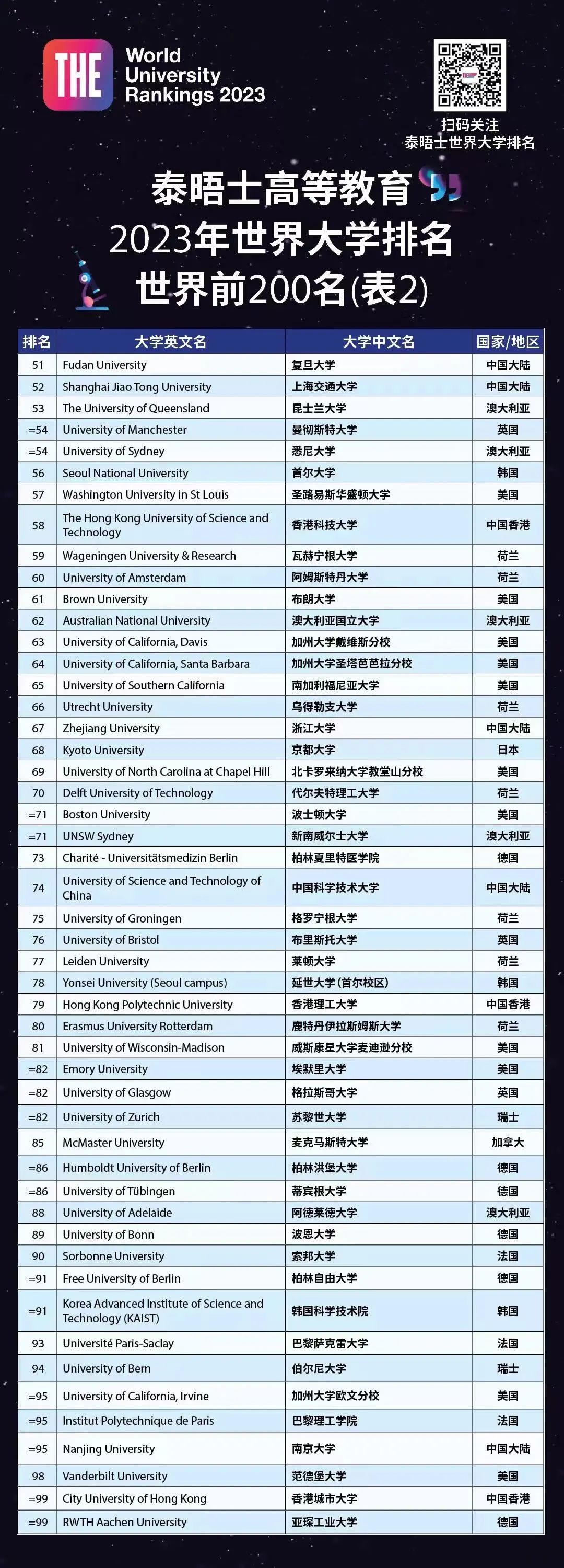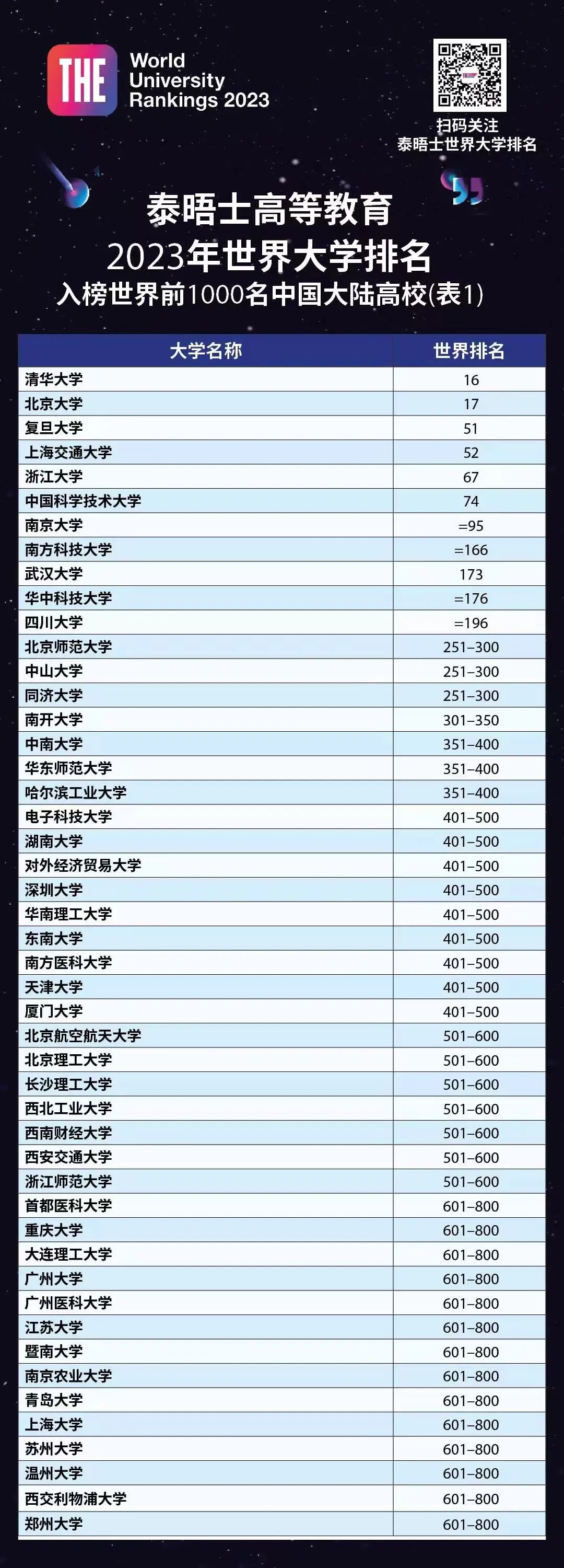 今年,泰晤士官微还特别整理了泰晤士中国高校排名,大家可以参考👇