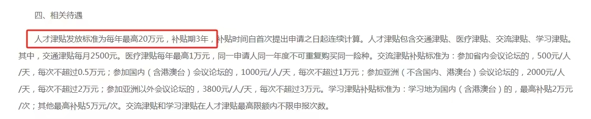 广州黄埔区,符合条件的本科生可获得2万元生活补贴,而硕士生、博士生更是可获得3万元和5万元的补贴;杰出人才、优秀人才每年津贴最高20万,连发三年,每月最高有1万元住房补贴,让留学生在回国后能更好地安居乐业。